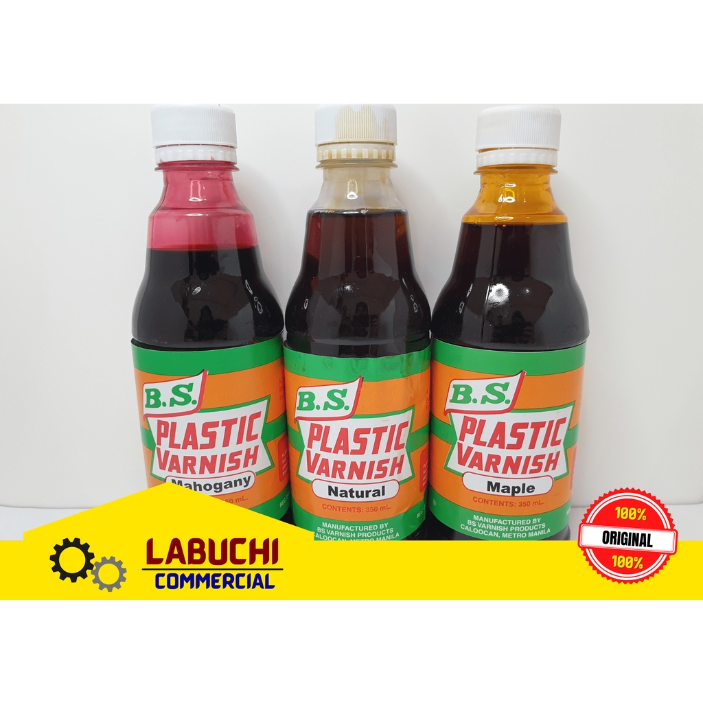 PLASTIC VARNISH 350mL NATURAL, MAPLE, MAHOGANY COLORS | B.S. BRAND