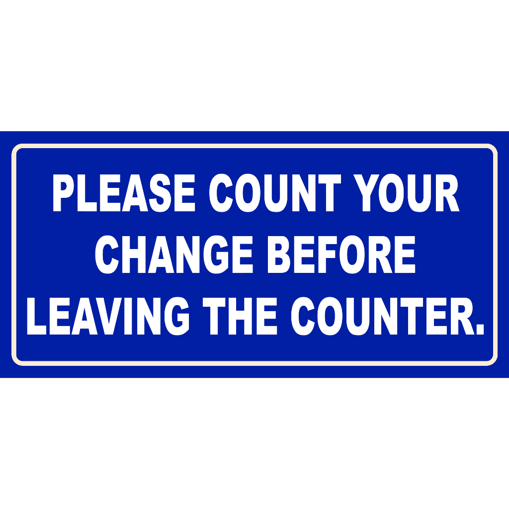 PLEASE COUNT YOUR CHANGE BEFORE LEAVING THE COUNTER SIGN PVC TYPE