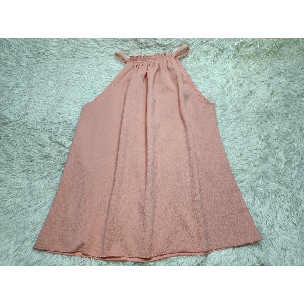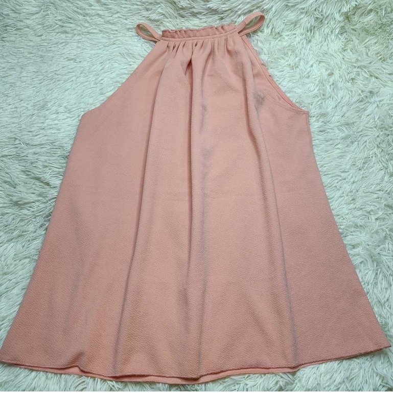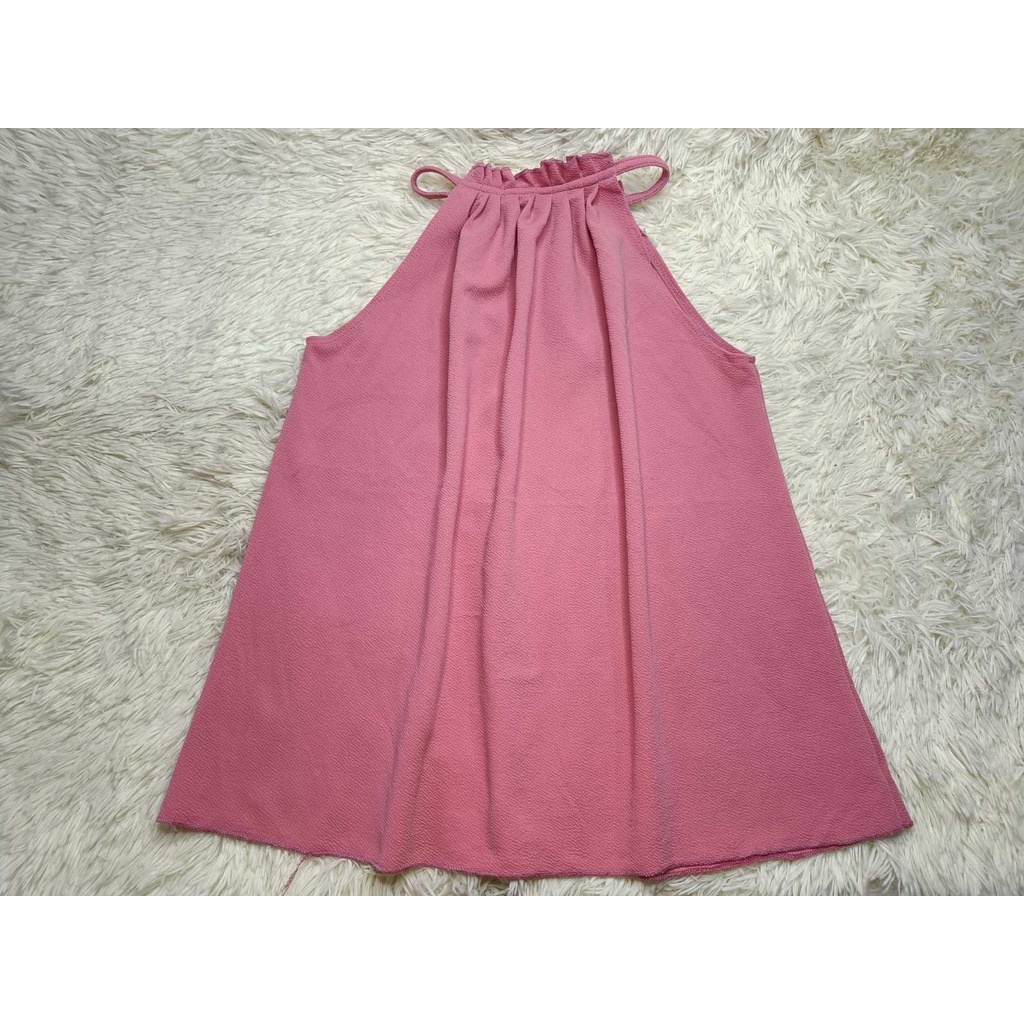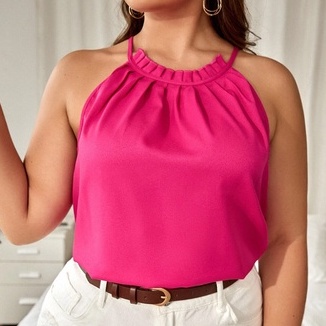 PLUS SIZE PLEATED HALTER BARK/CREPE FABRIC TOP SLEEVELESS