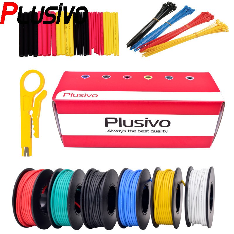 PLUSIVO HOOKUP WIRE KIT (6 COLORS, 7 M (23 FT) EACH, AWG 20, STRANDED WIRE)