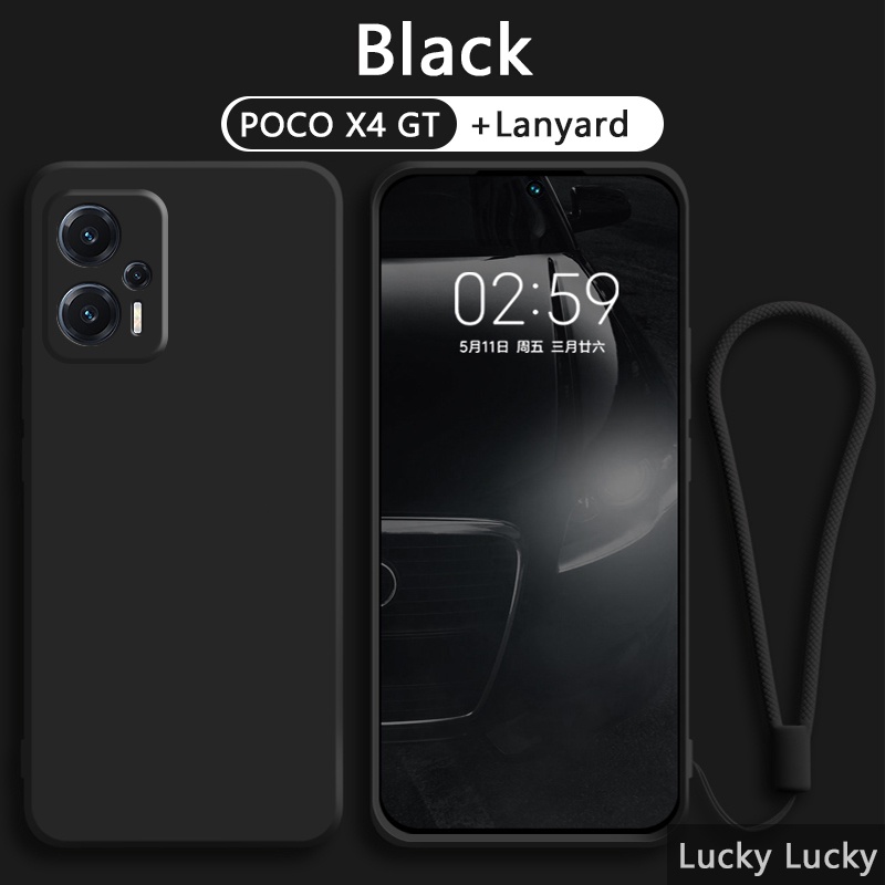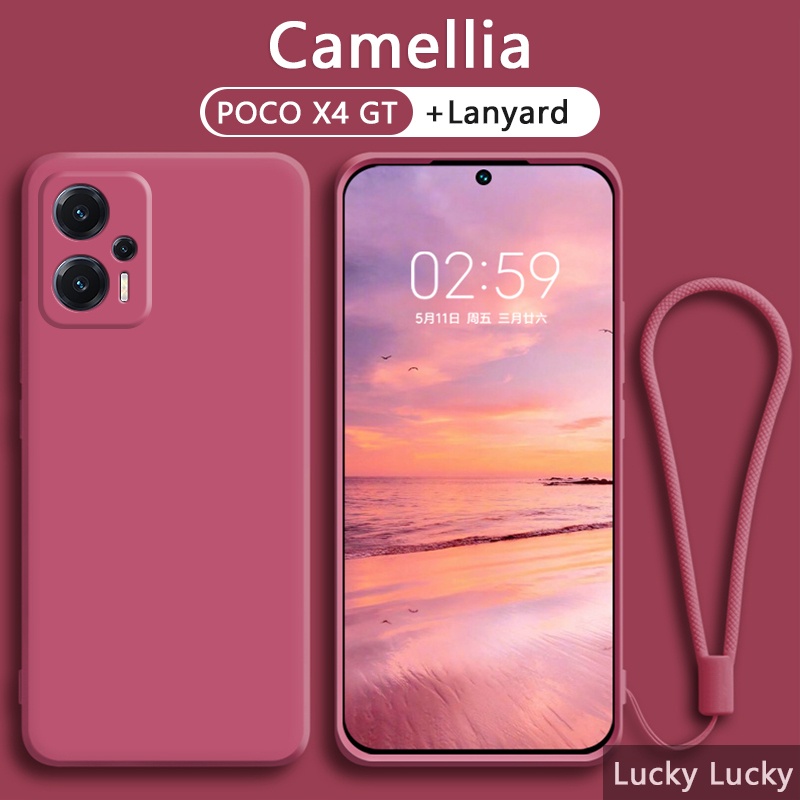 POCO X4 GT Case POCO X4 PRO X3 PRO NFC GT Liquid Silicone Case With Full Cover Camera Free Lanyard Cover Rope Strap Lanyard Shockproof Xiaomi POCO Casing POCO F4 POCO F3
