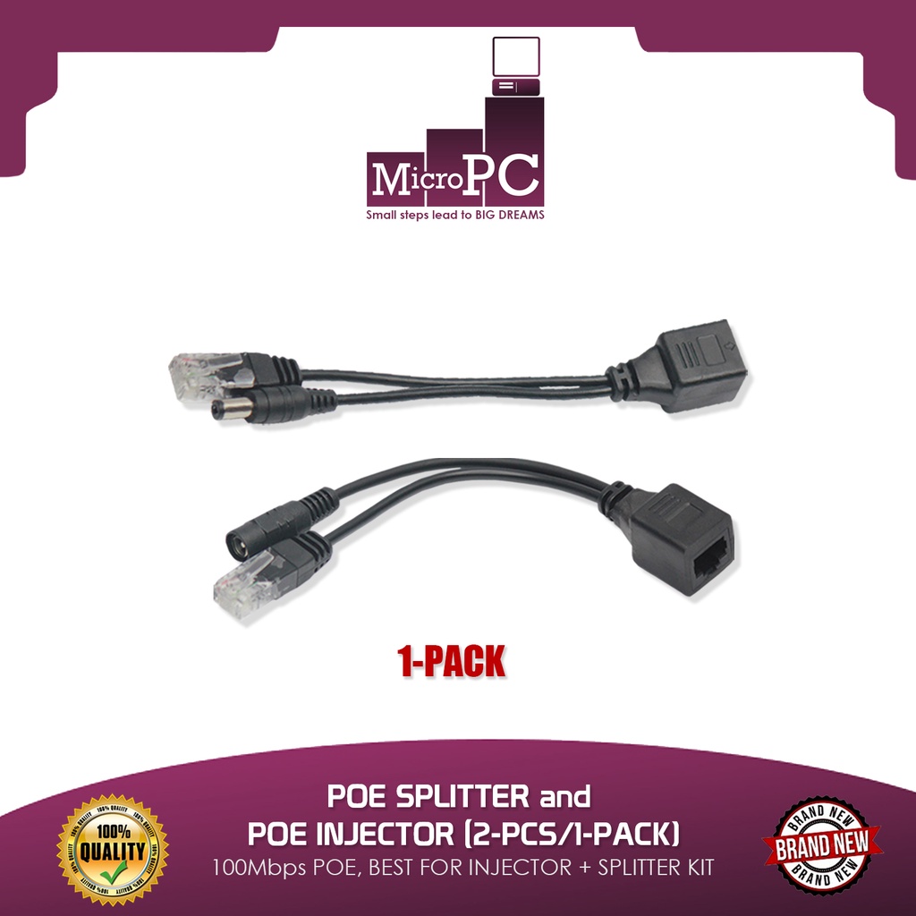 POE SPLITTER and POE INJECTOR (2-PCS/1-PACK), 100Mbps POE, BEST FOR INJECTOR + SPLITTER KIT