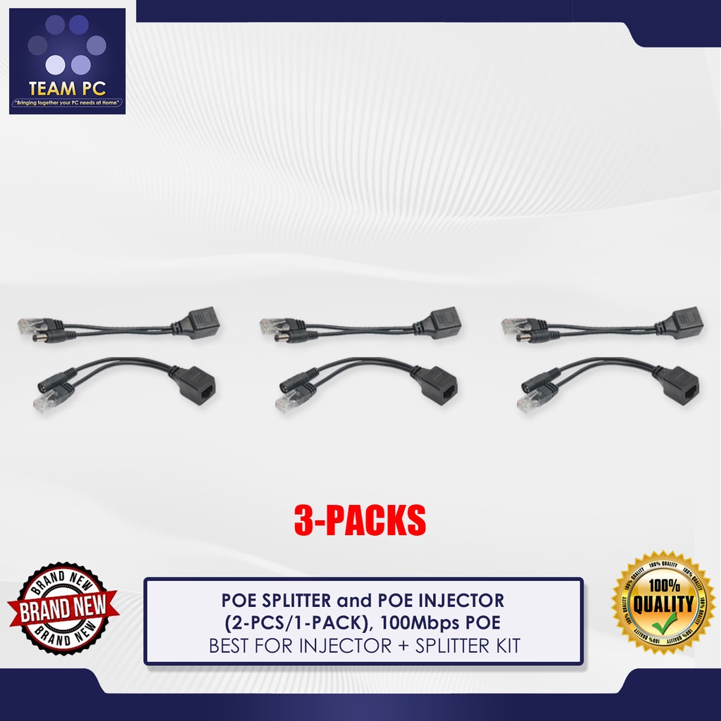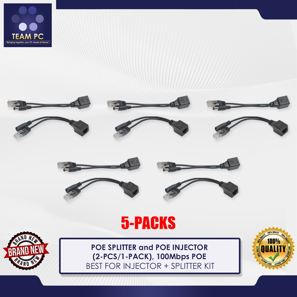 POE SPLITTER and POE INJECTOR (2-PCS/1-PACK), 100Mbps POE, BEST FOR INJECTOR + SPLITTER KIT