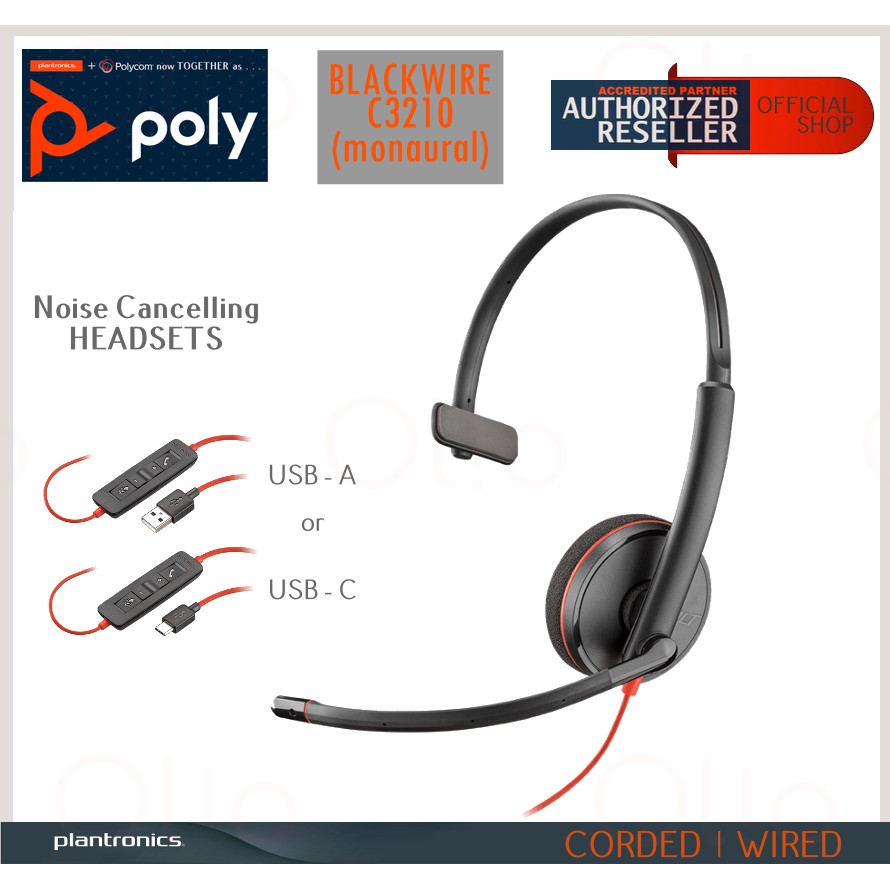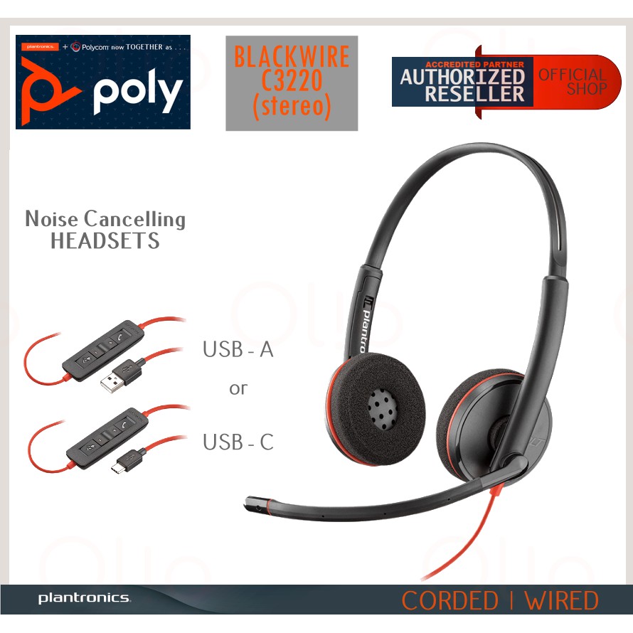 POLY 3200 HEADSETS (PLANTRONICS BLACKWIRE C3210 | C3215 | C3220 | C3225) Noise Cancelling Brand New