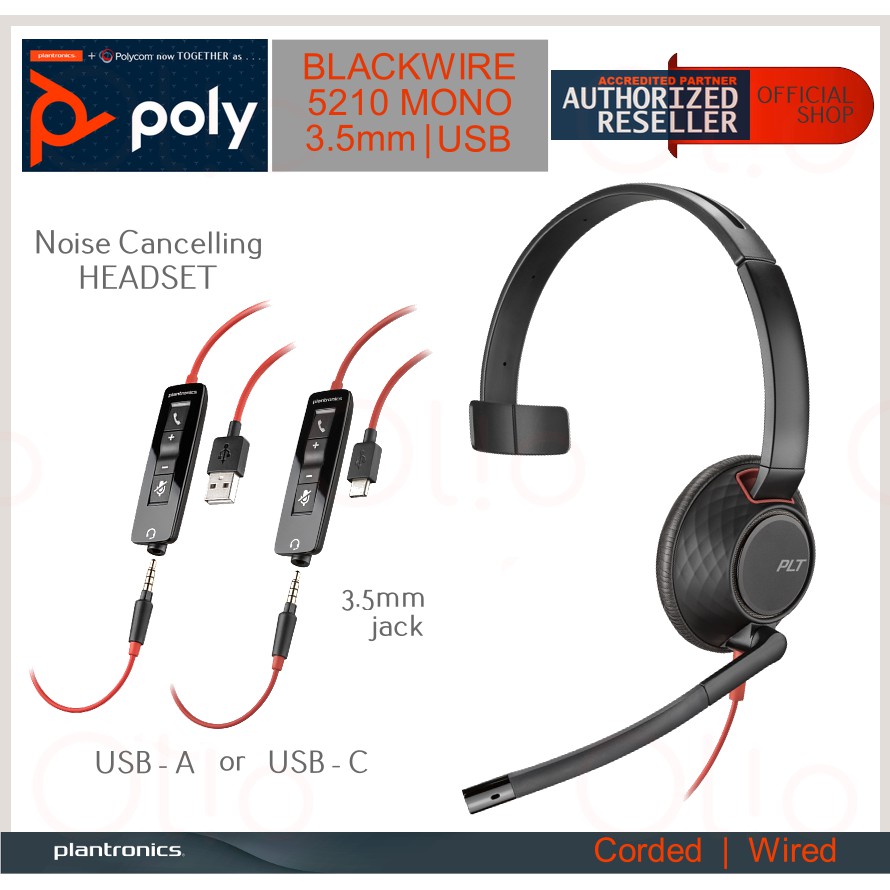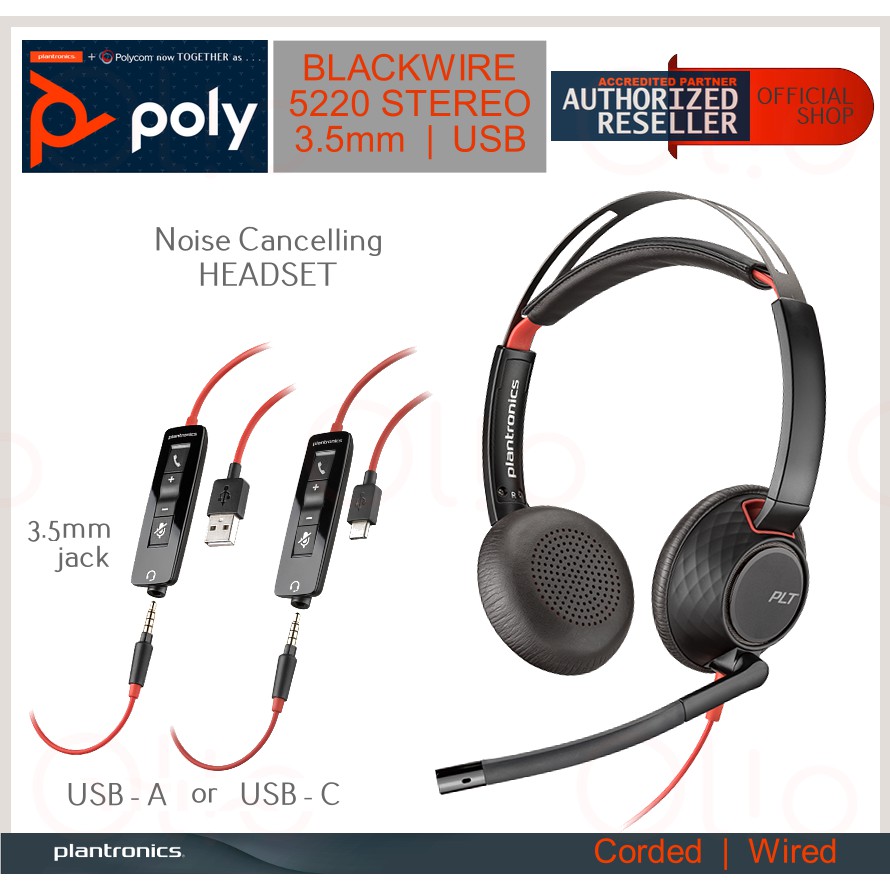 POLY 5200 HEADSETS (PLANTRONICS BLACKWIRE C5210 | C5220) Noise Cancelling Brand New Authentic