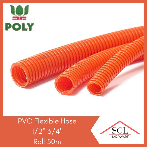 POLY PVC Flexible Hose 1/2" 3/4" Sold per roll (50m) Orange Flexible Hose (Polyflex)