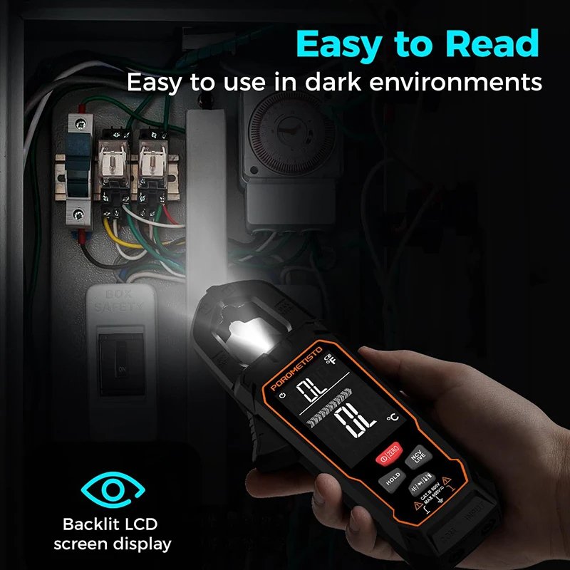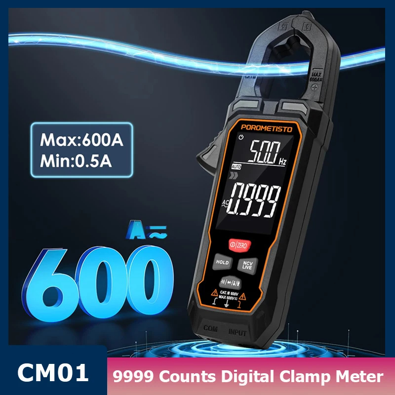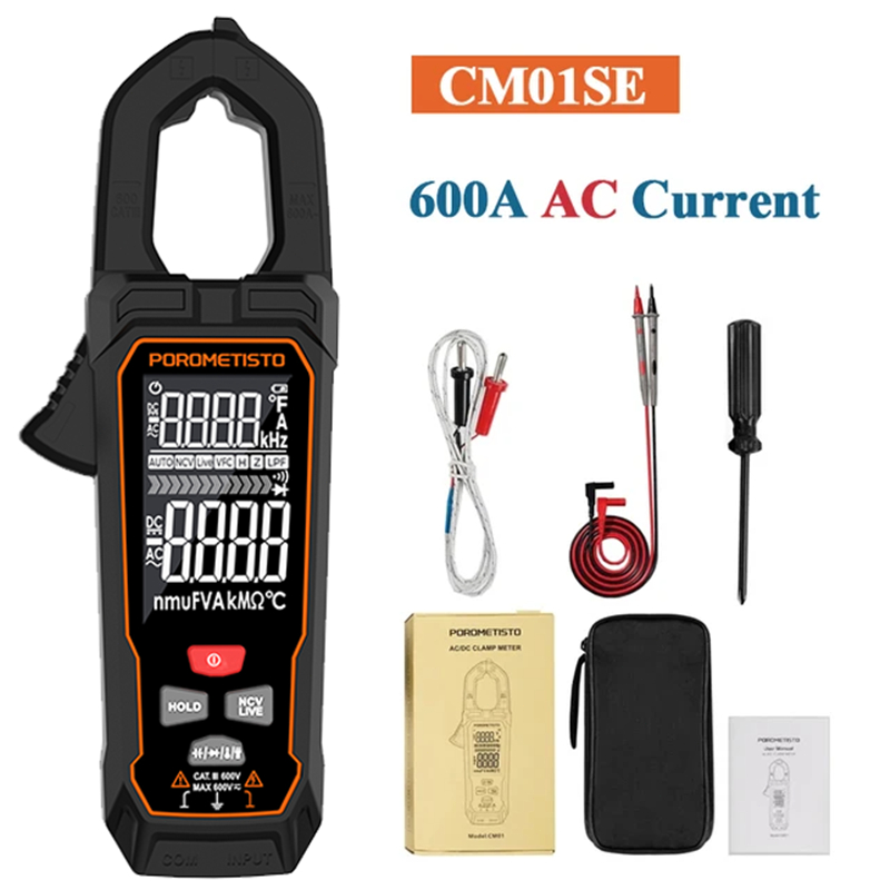 POROMETISTO CM01 New Smart Digital Clamp Meter 9999 Counts True RMS AC/DC Current Clamp Meter Temp Ohm Capacitance Amperimetric Clamp Multimeter