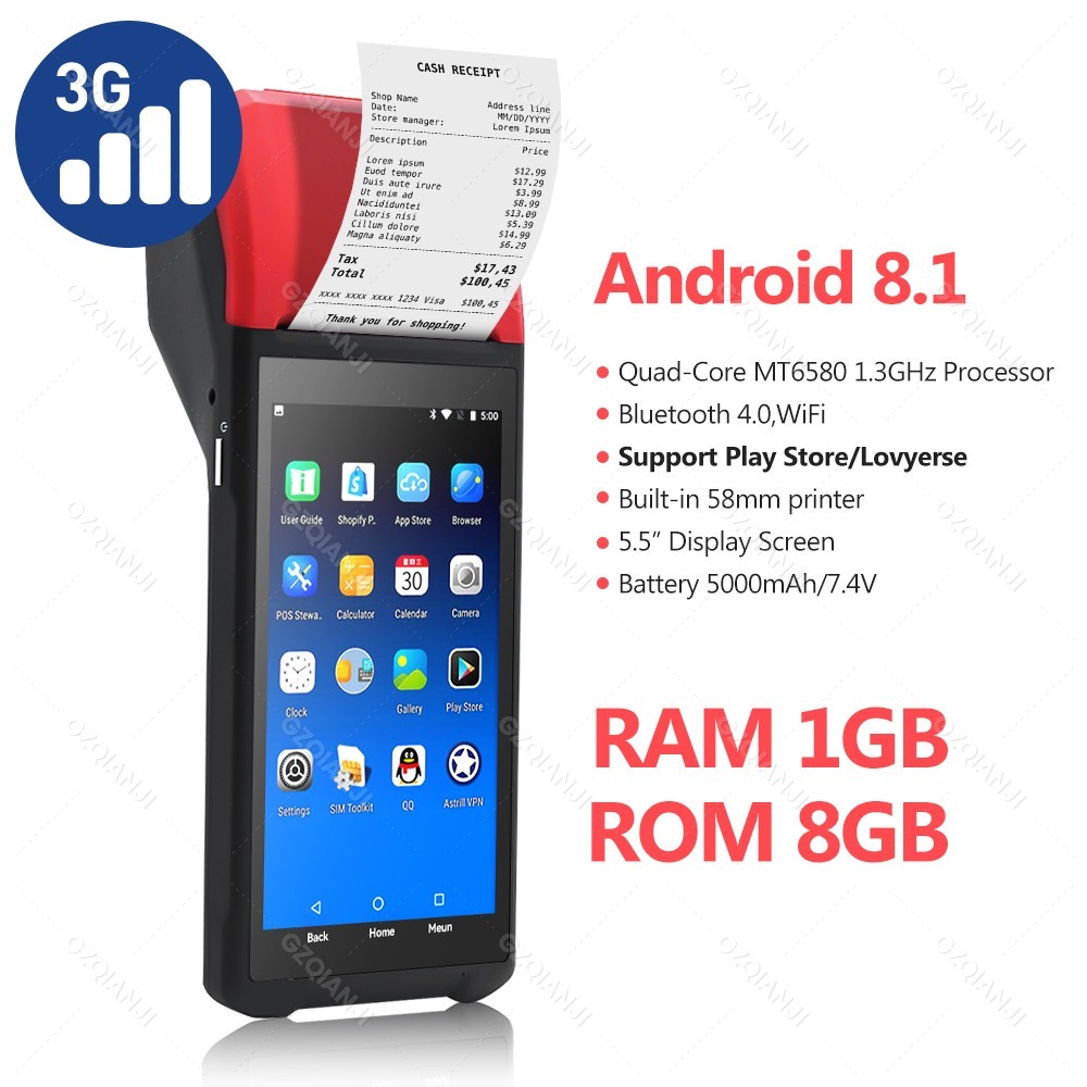 POS Terminal PDA Android 8.1 Mobile 58mm Receipt Printer 4G Bluetooth NFC Smart Handheld PDA