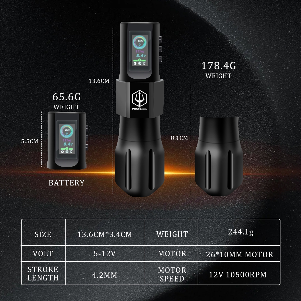 POSEIDON Tattoo Pen Kit-Tattoo Machine with 1800mAh Capacity Wireless Power, Wireless Tattoo Pen with Digital LED Display for Artist