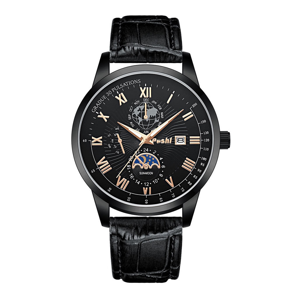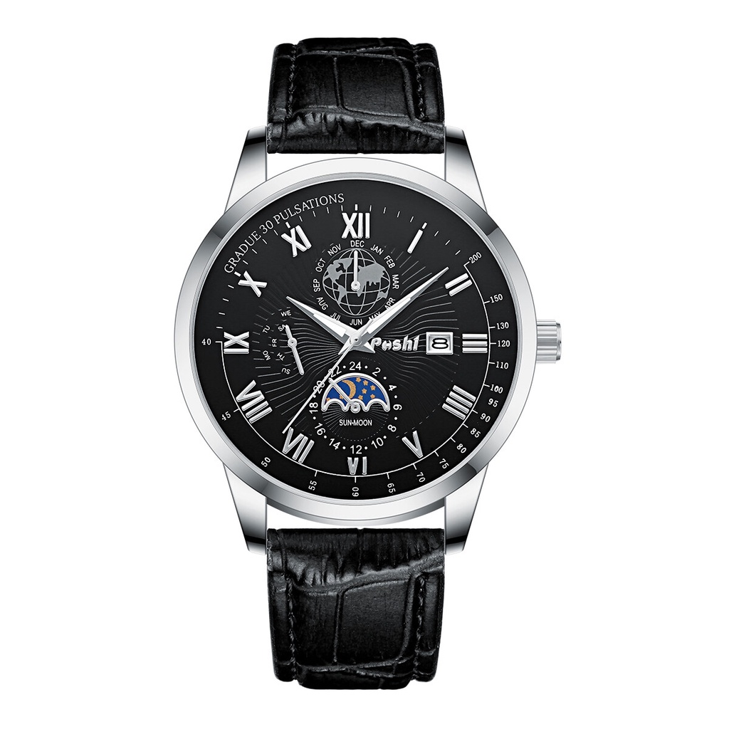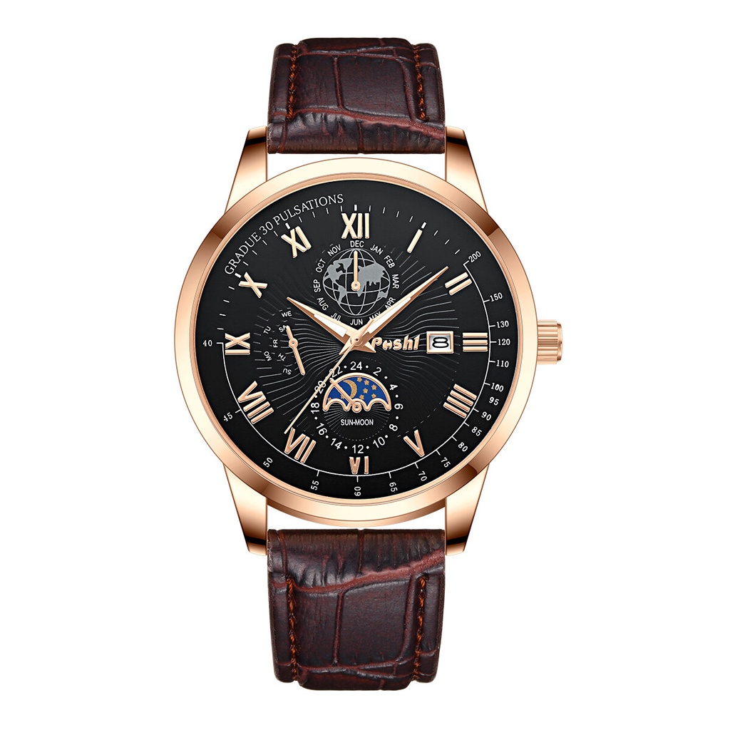 POSHI Original Men Watch Luxury Brand Leather Casual Waterproof Quartz Fashion Wristwatch