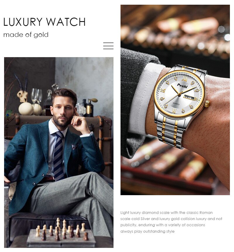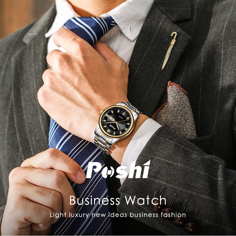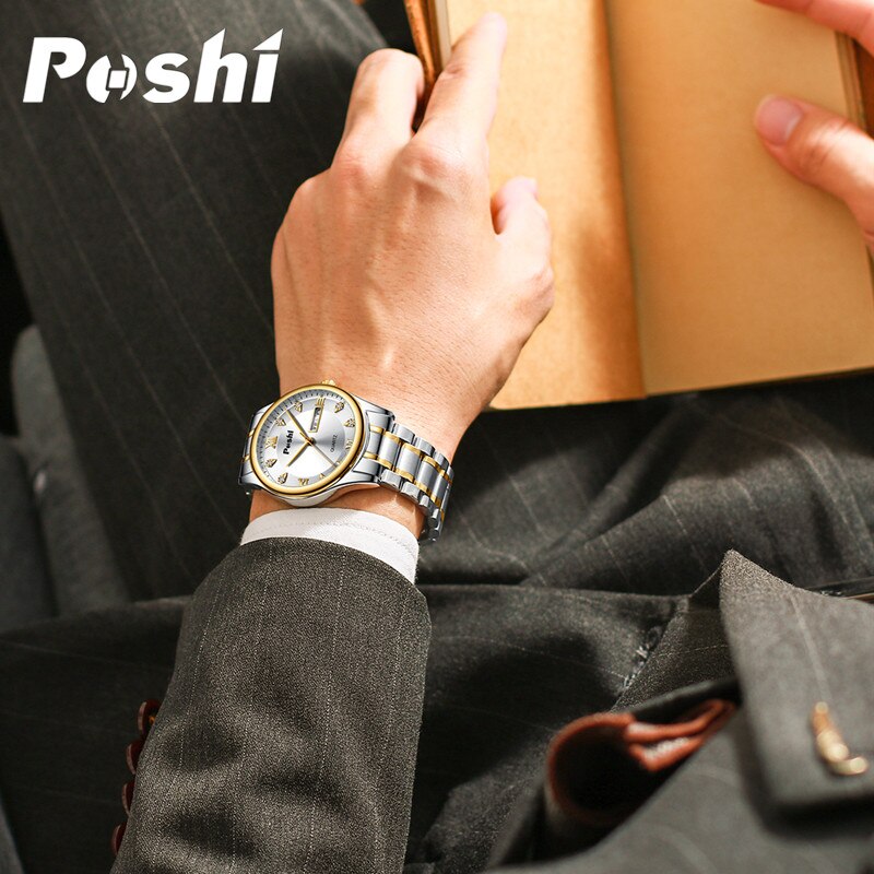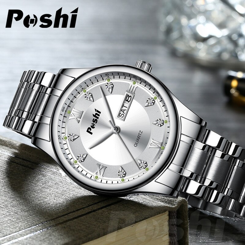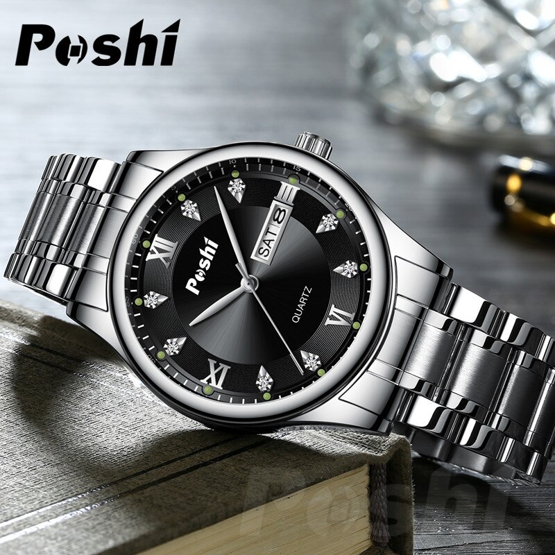 POSHI Original Ps903 Men's Watch Stainless Steel Week Calendar Sport Quartz For Men Waterproof