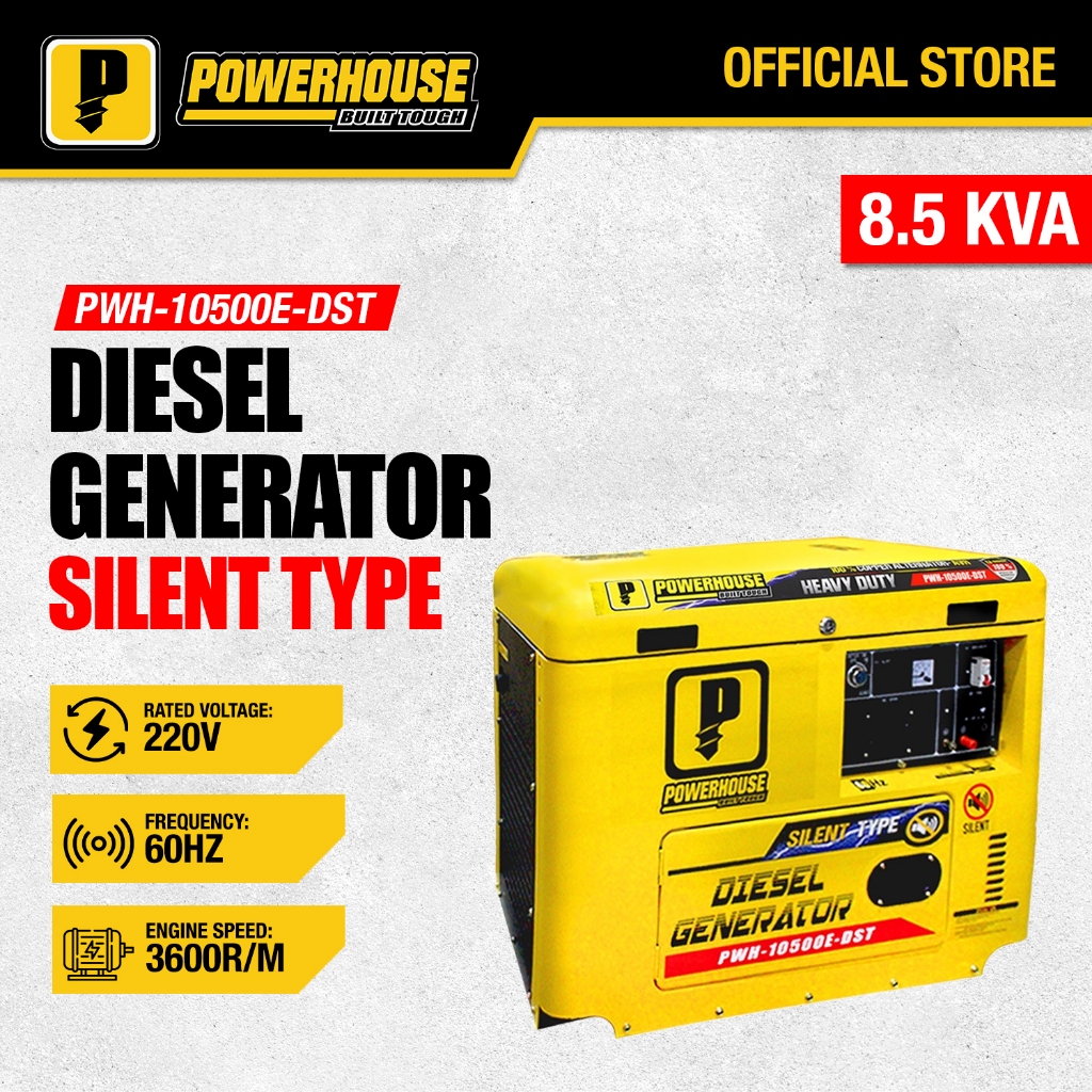 POWERHOUSE Diesel Silent Type Generator with Battery for Electric Start Max Power 8.5KW PHI