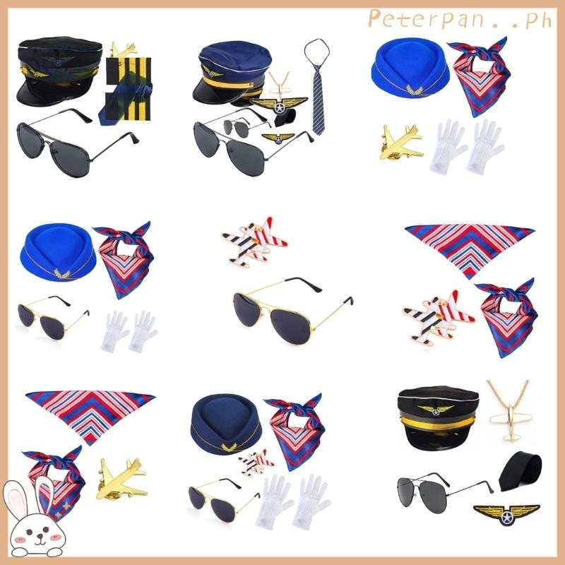 PP Captain Costume Kit Pilot Dress Up Accessory Aviator-Sunglasses Stewardess Cosplay Costume Accessories Stewardess Hat