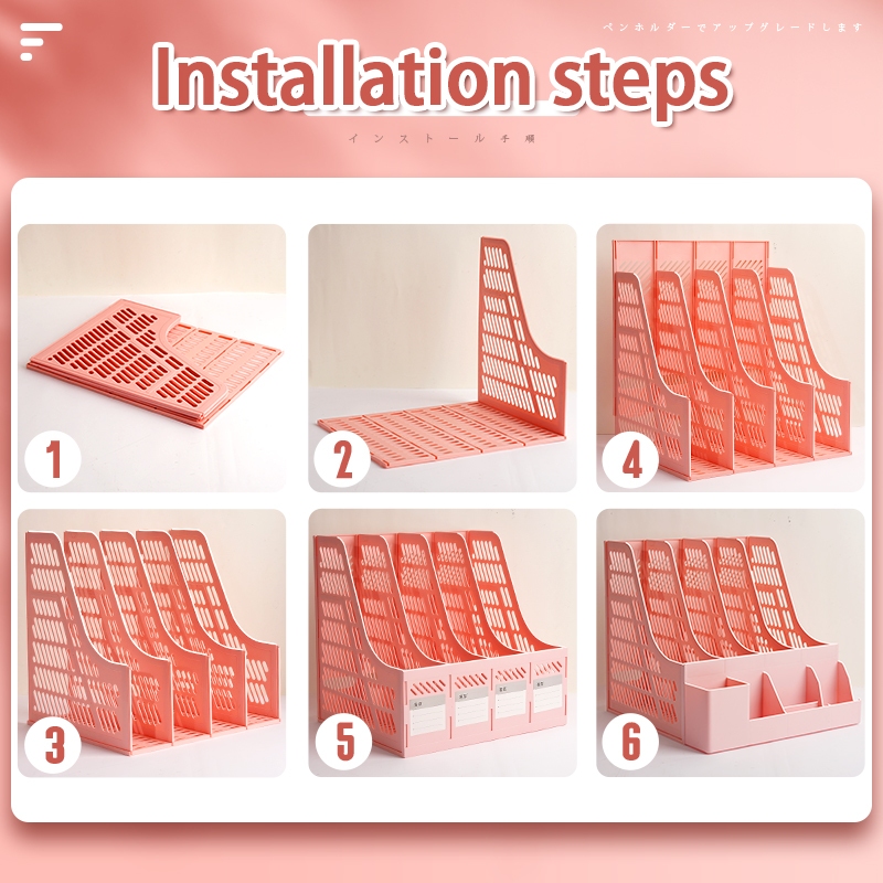 PP Material 4-Column Multi-functional Storage Rack for File Data, Books, Pencils and Sundries in Office