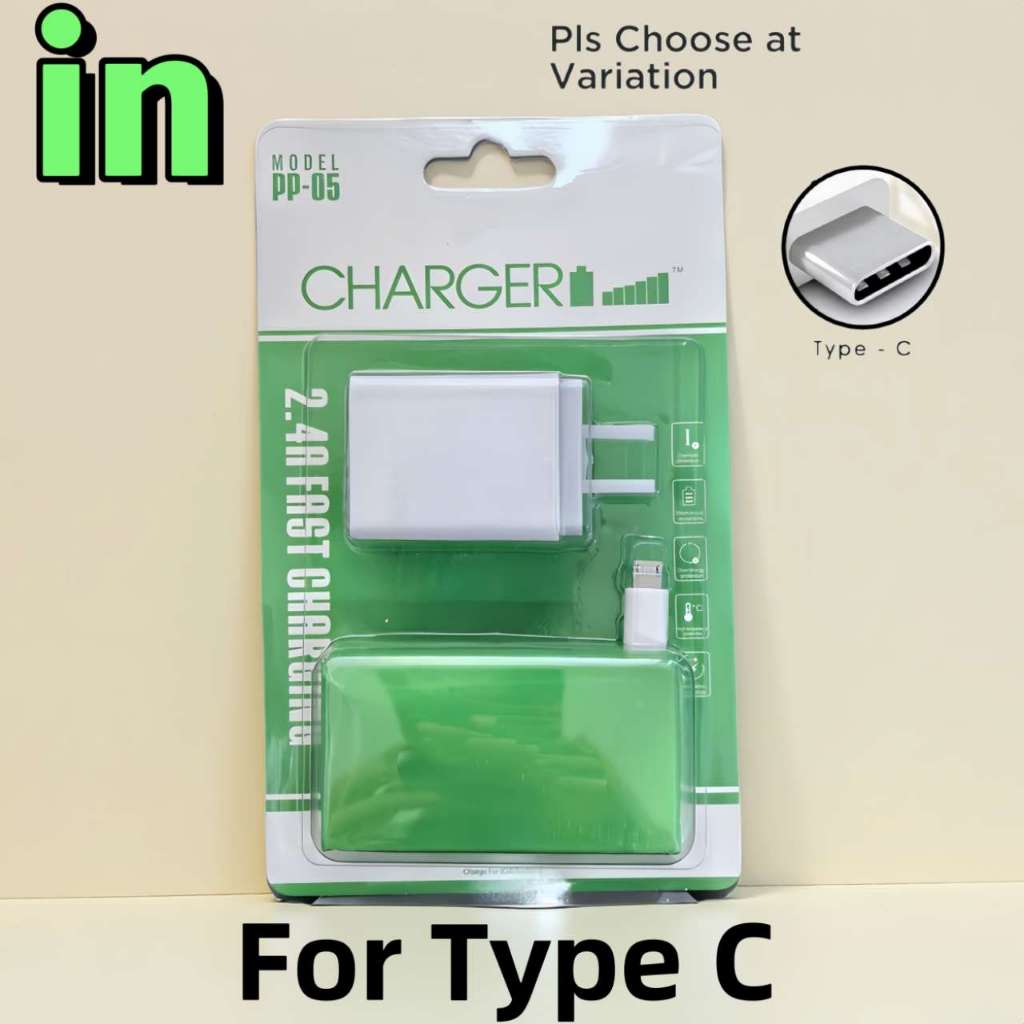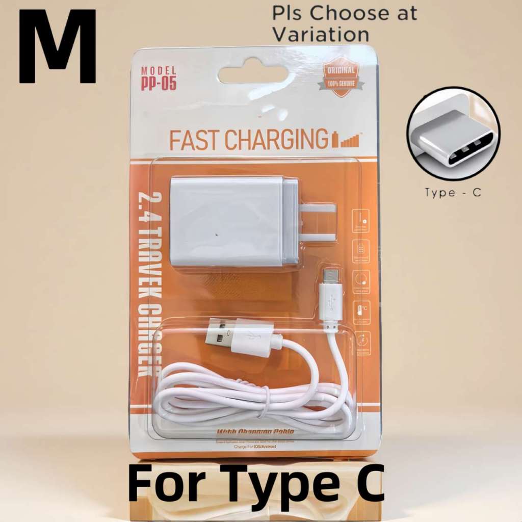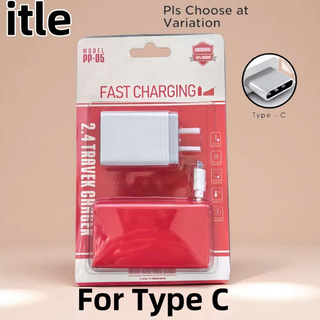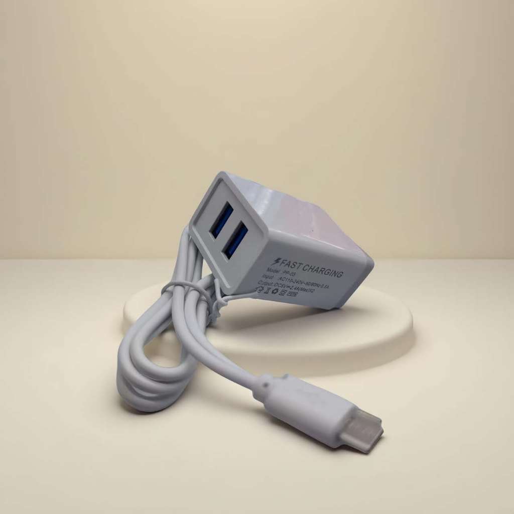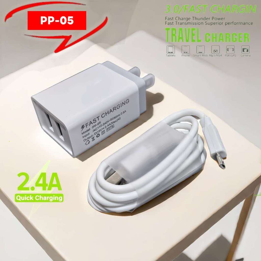 PP05 itel Fast Charger 2.4A Dual USB Port Adapter With Data Usb Cable For Android Micro Type-C Phone