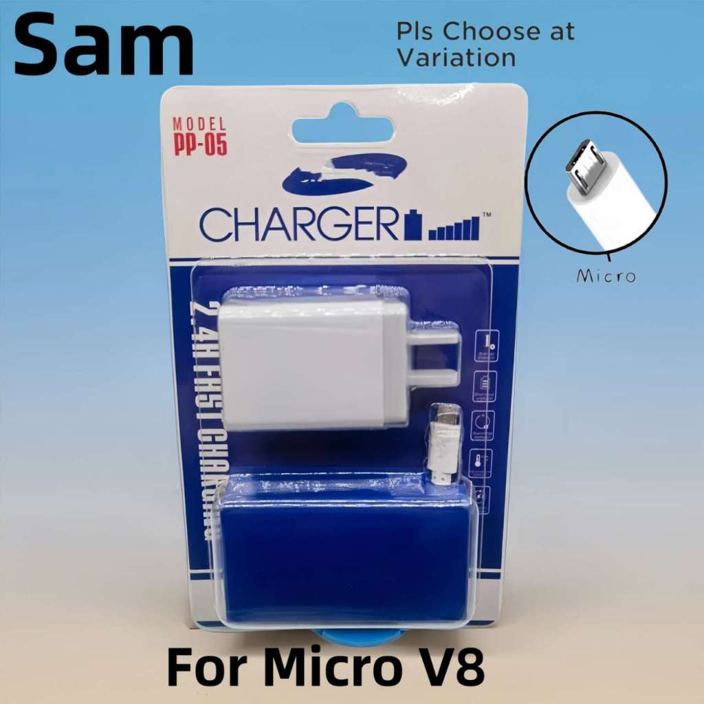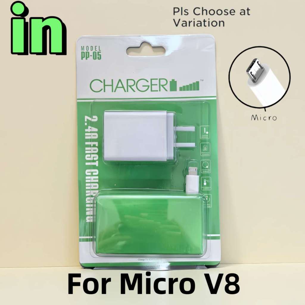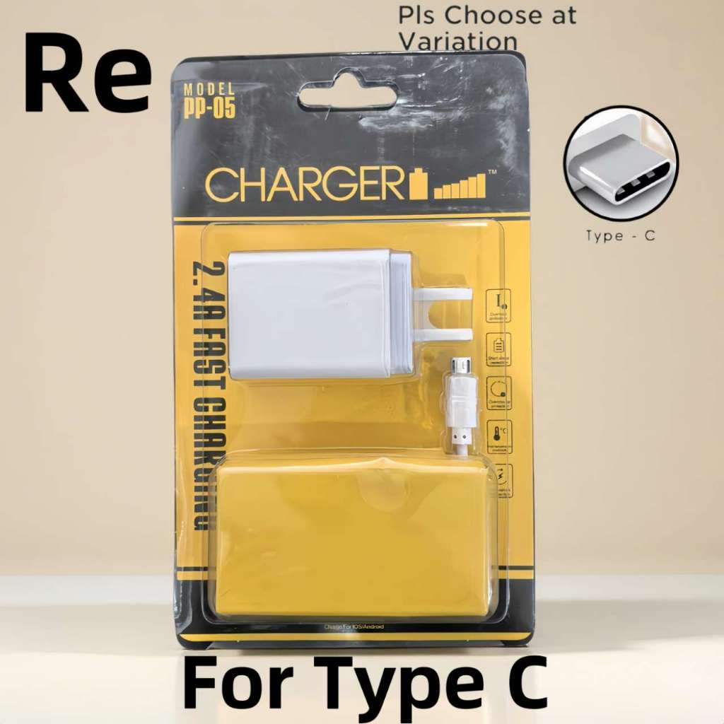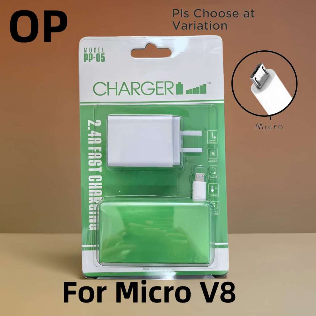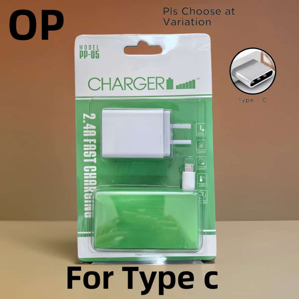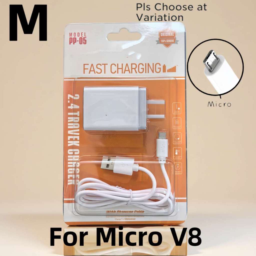 PP05 itel Fast Charger 2.4A Dual USB Port Adapter With Data Usb Cable For Android Micro Type-C Phone