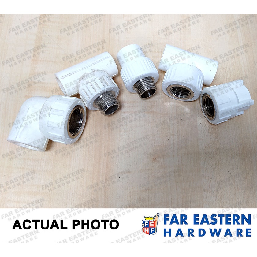 PPR Pipe White Fittings Threaded Male Female Elbow Adaptor Tee with Thread 1/2" 3/4" 1"