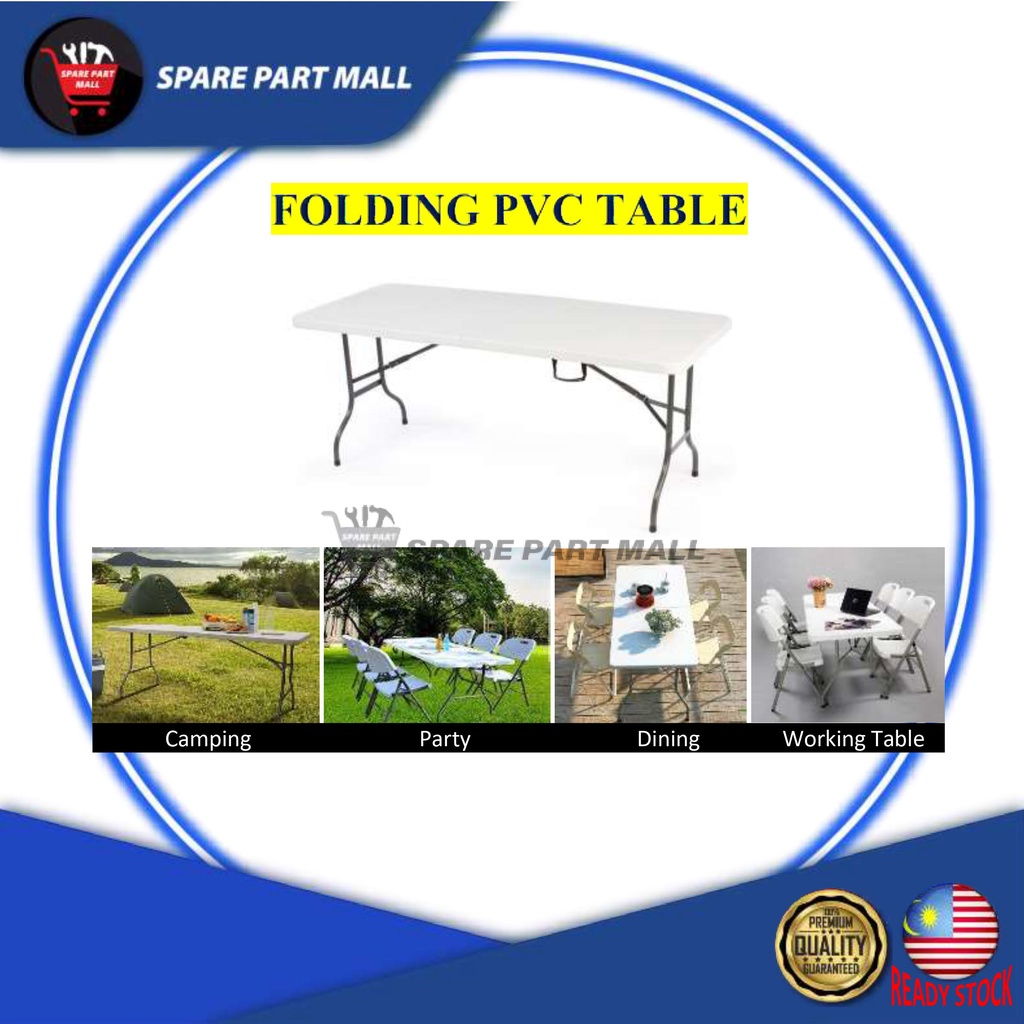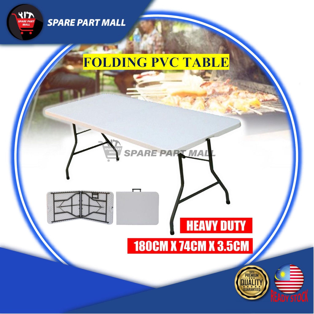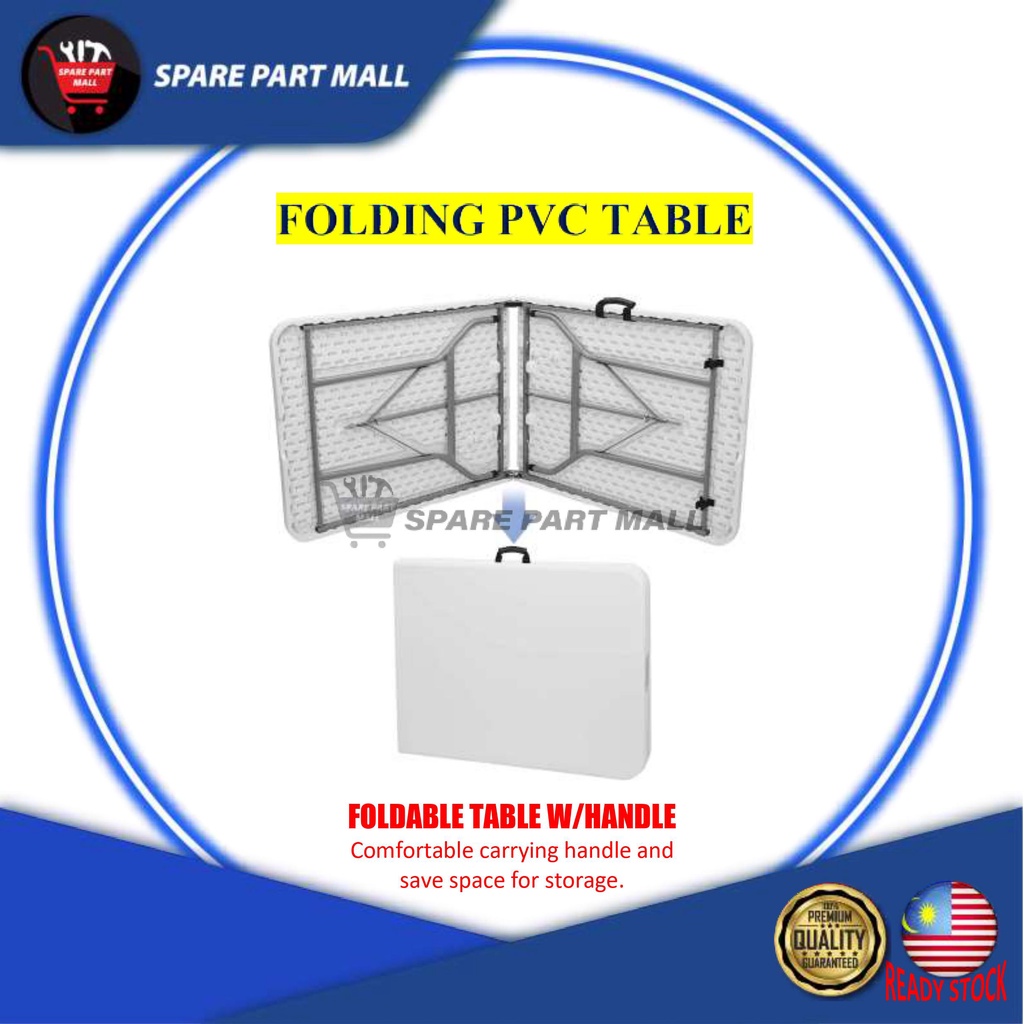 PREMIUM FOLDING PVC TABLE (6FT) HEAVY DUTY WATERPROOF OUTDOOR FOLDABLE TABLE W/ HANDLE STEEL LEG/ MEJA LIPAT CAMPING