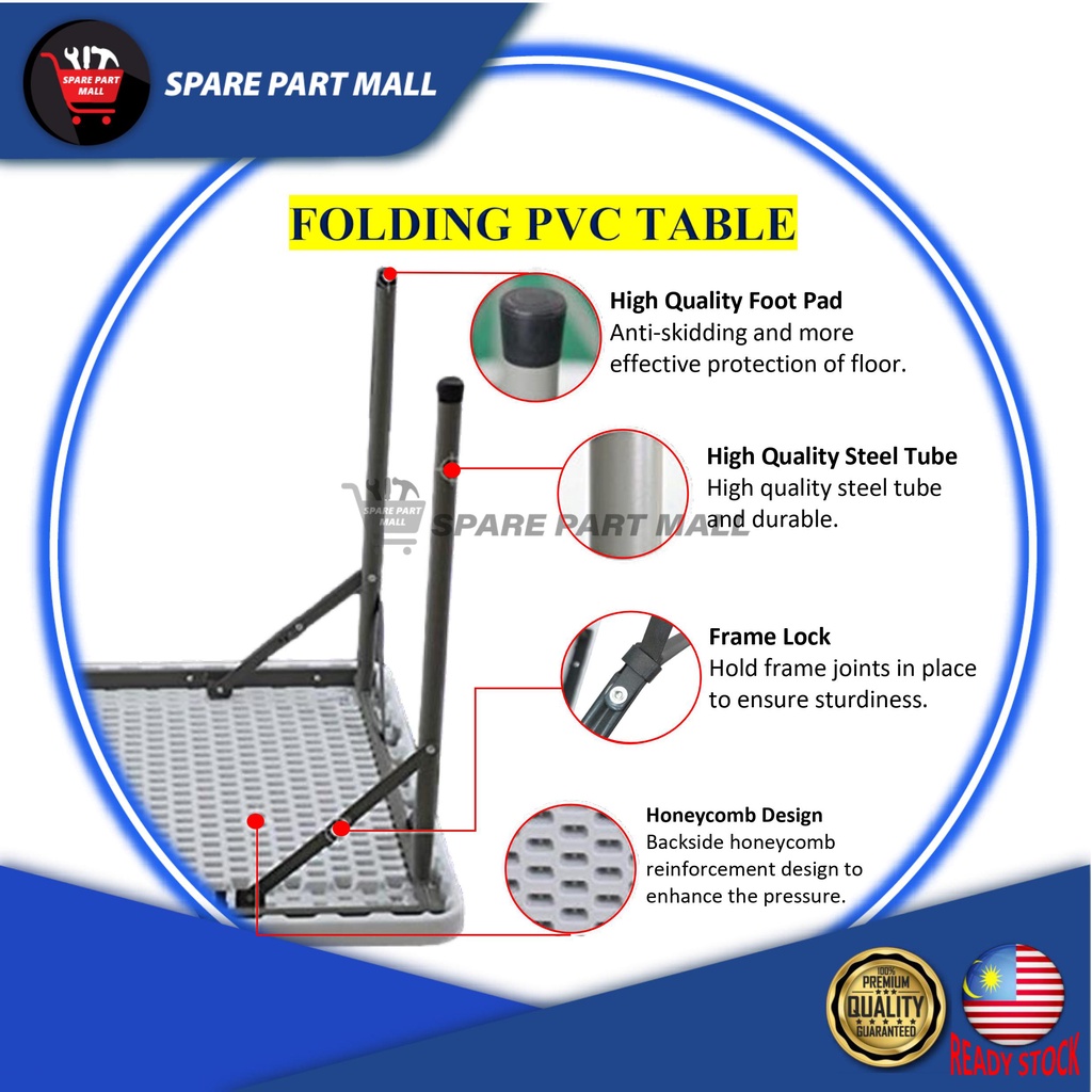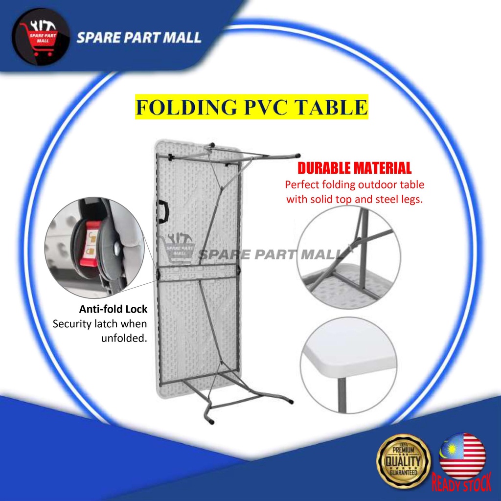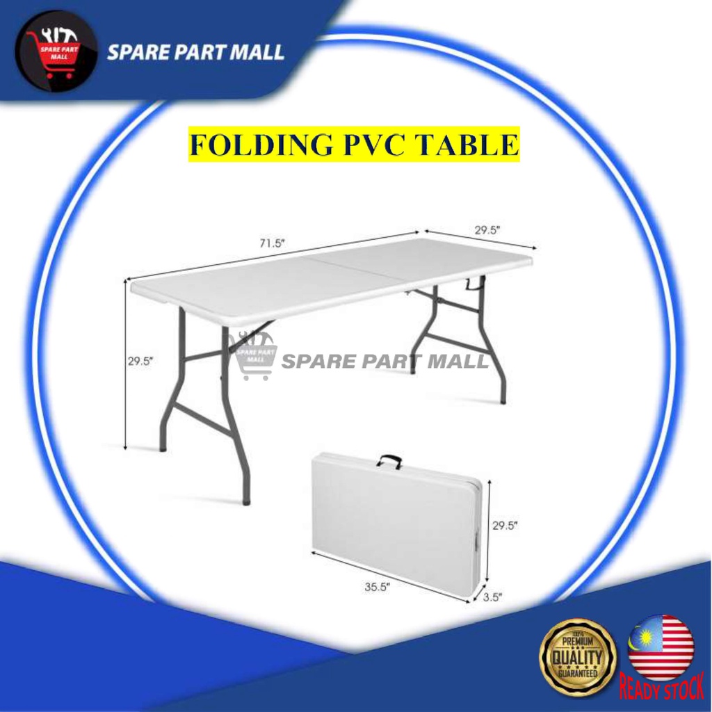 PREMIUM FOLDING PVC TABLE (6FT) HEAVY DUTY WATERPROOF OUTDOOR FOLDABLE TABLE W/ HANDLE STEEL LEG/ MEJA LIPAT CAMPING