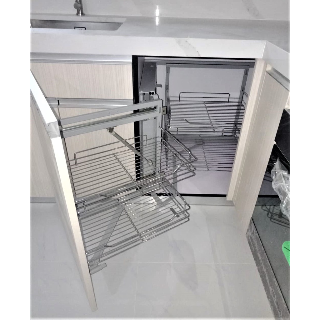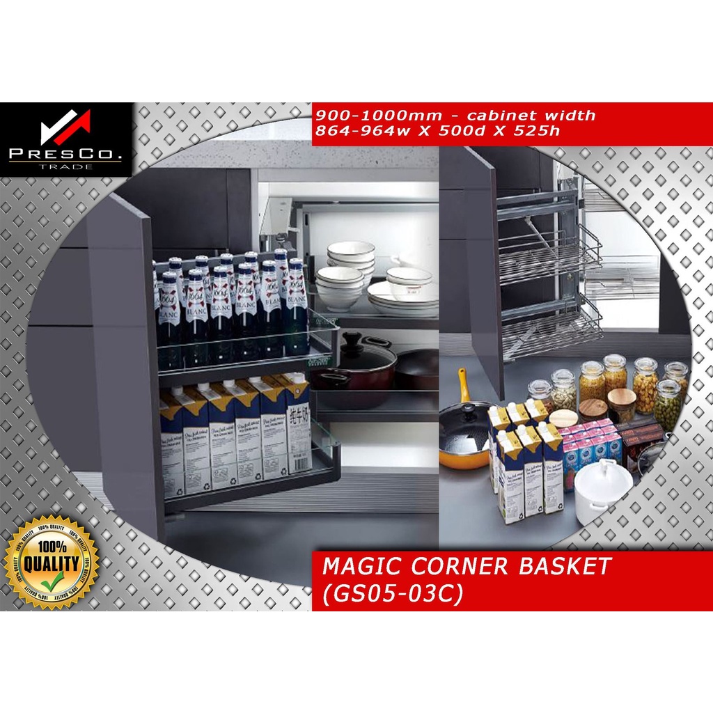 PRESCO TRADE STAINLESS STEEL CORNER WIRE BASKET FOR LEFT OR RIGHT OPENING