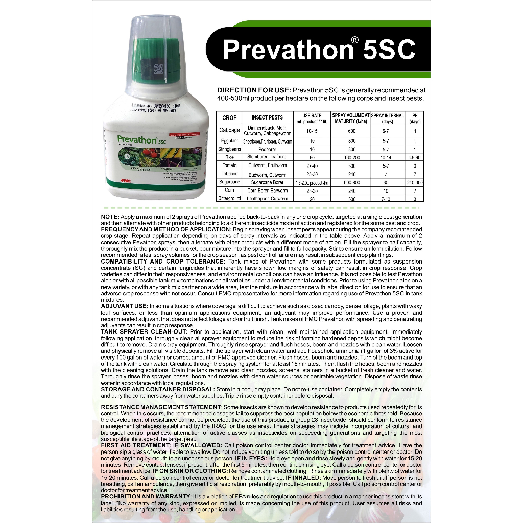 PREVATHON 5SC BY FMC - CHLORANTRANILIPROLE - INSECTICIDE - INSECT CONTROL, PLANT CARE - 250 ML
