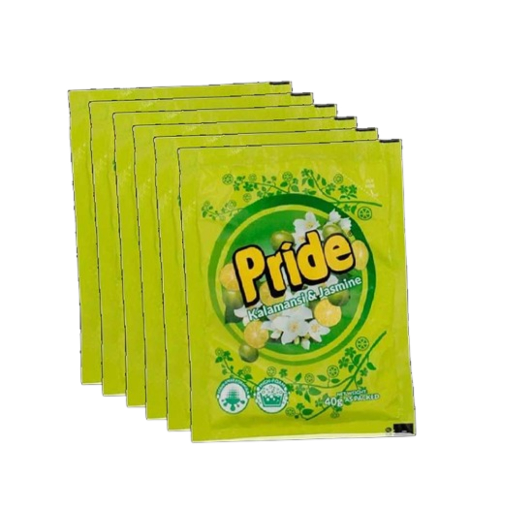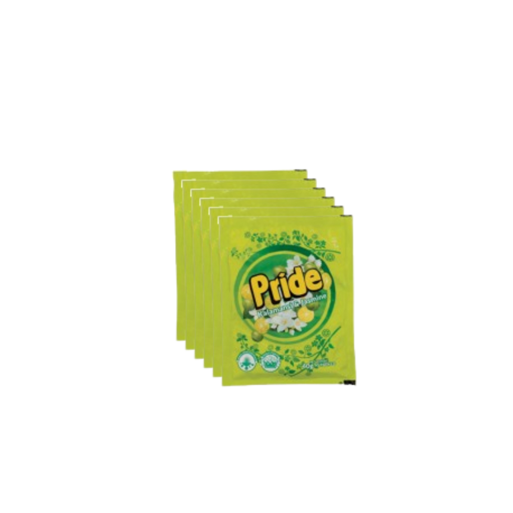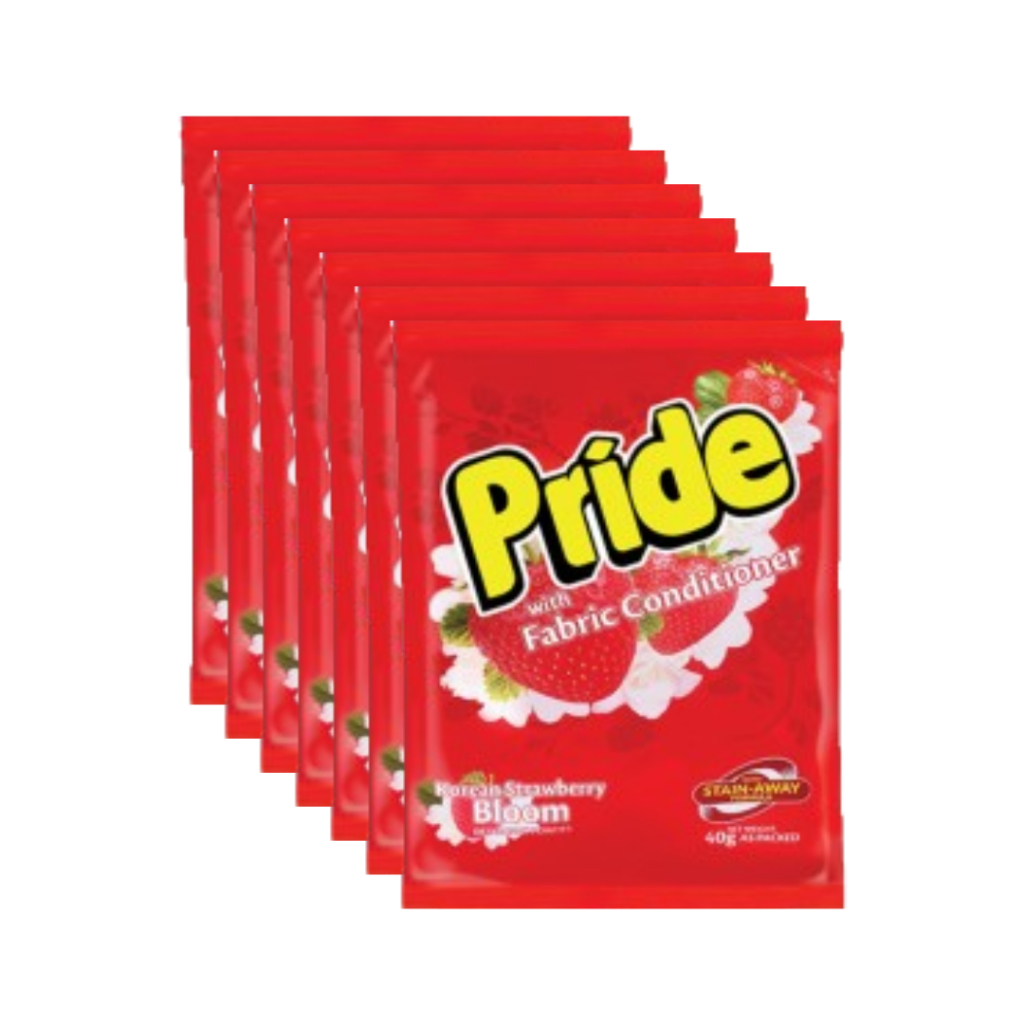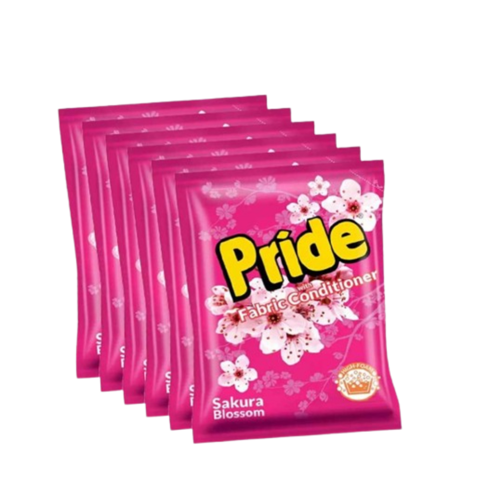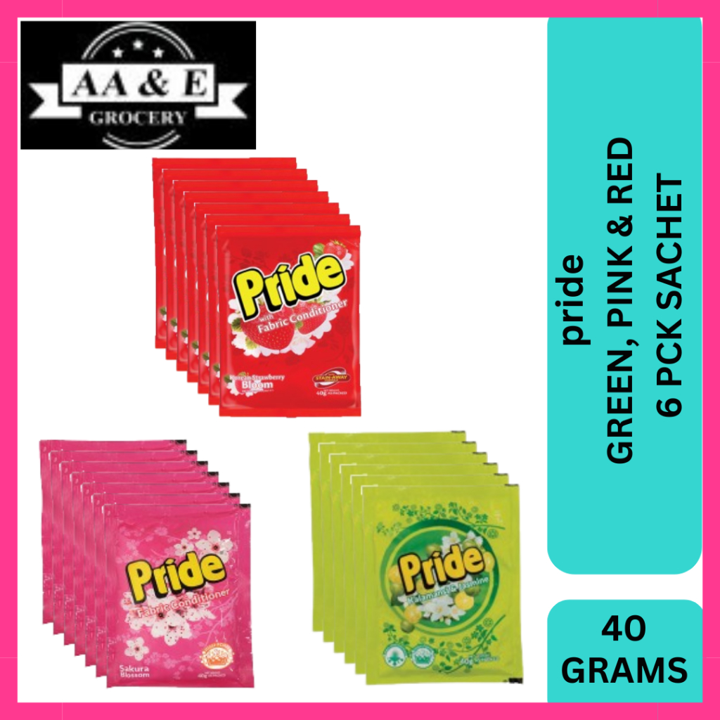 PRIDE PINK, GREEN & RED POWDER LAUNDRY DETERGENT WITH FABRIC CONDITIONER 6 PK SACHET 40 GRAMS