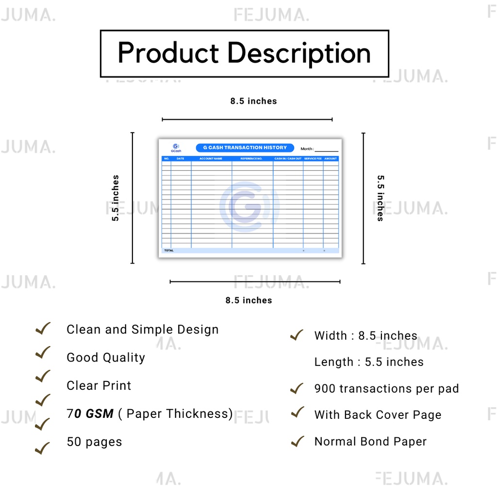 PRINTED GCASH TRANSACTION LOG | 50 PAGES PER PAD |