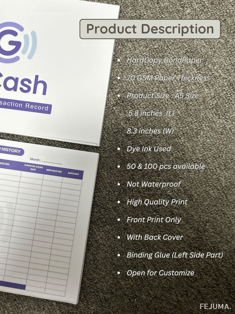 Gcash Transaction Record Book | 70 gsm Paper Thickness | Fejuma