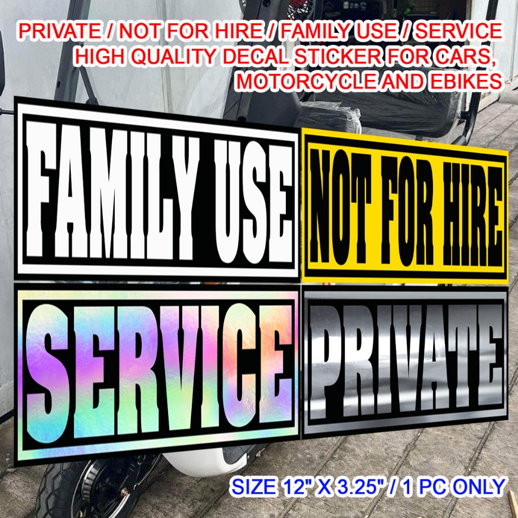 PRIVATE / NOT FOR HIRE / FAMILY USE / SERVICE HIGH QUALITY DECAL STICKER FOR CARS, MOTORCYCLE, EBIKE