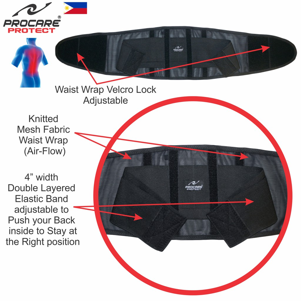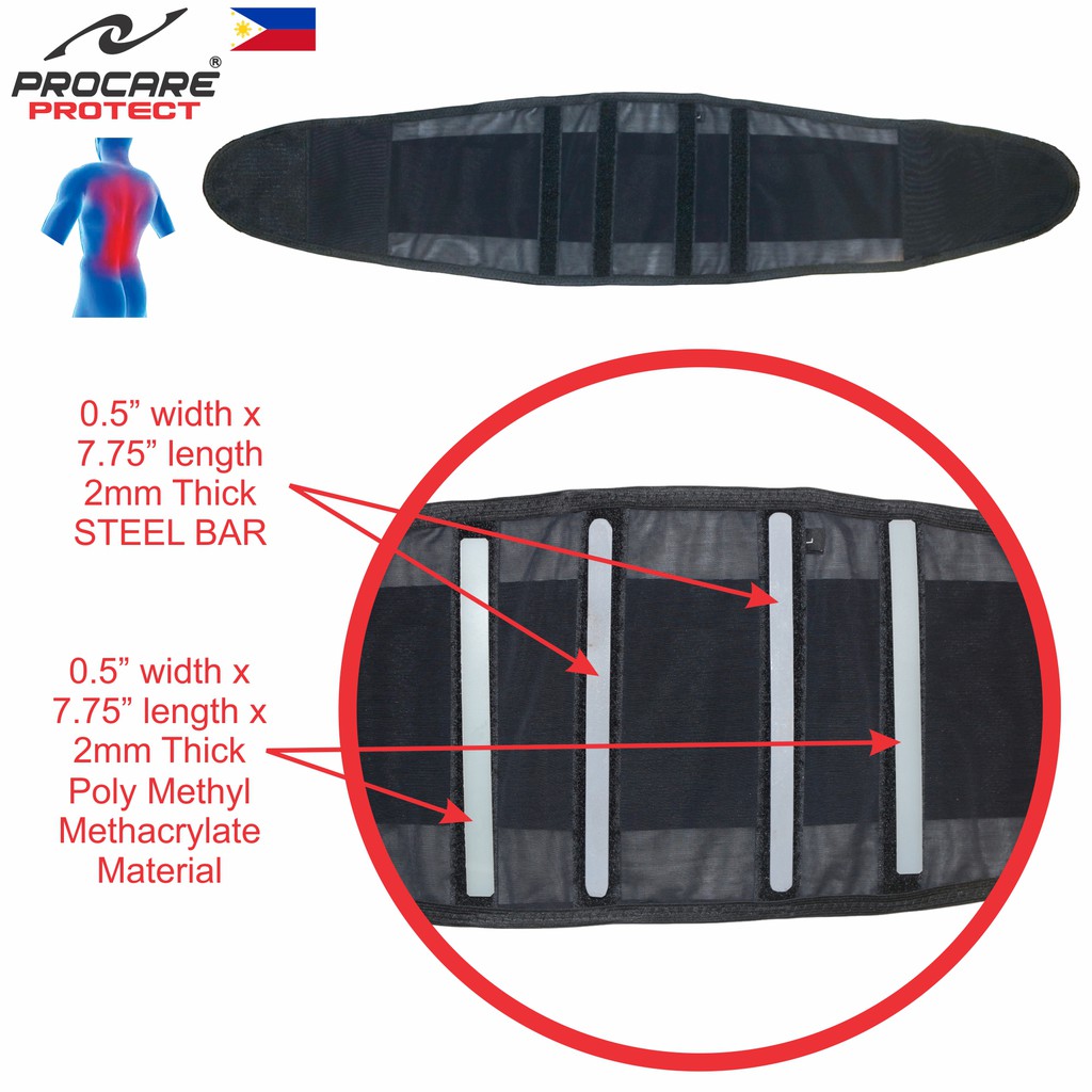 PROCARE PROTECT #BS-04 Lumbar Back Support Belt, 2pcs STEEL BARS Support, Unisex