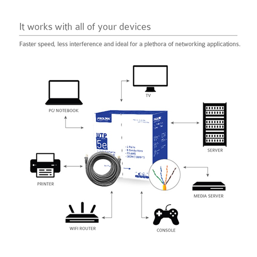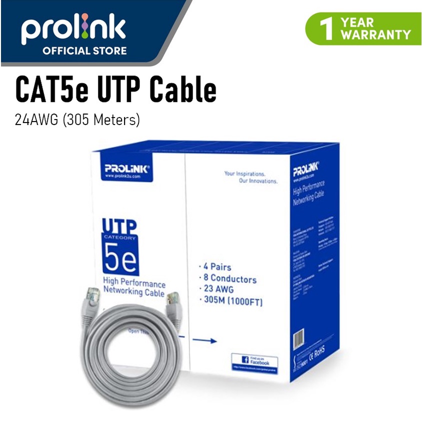 PROLiNK CAT5E 24AWG UTP LAN Gigabit Ethernet Network Cable (305M) High Performance Networking Cable