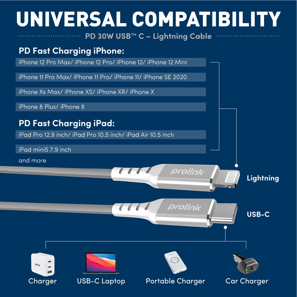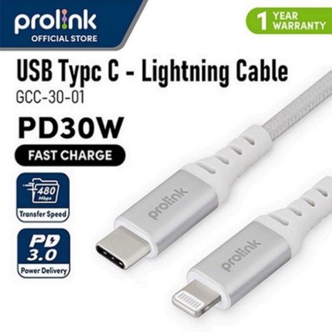 PROLiNK GCL-30-01 30W USB-C to Lightning PD Cable | Fast Charge iPhone charger 1 meter MFi Certified