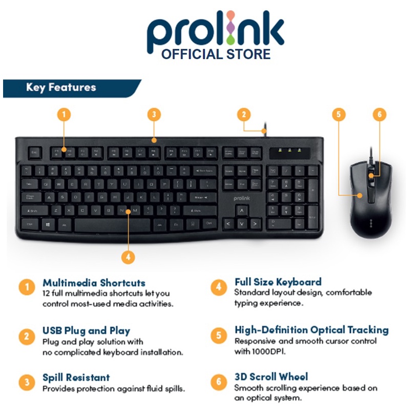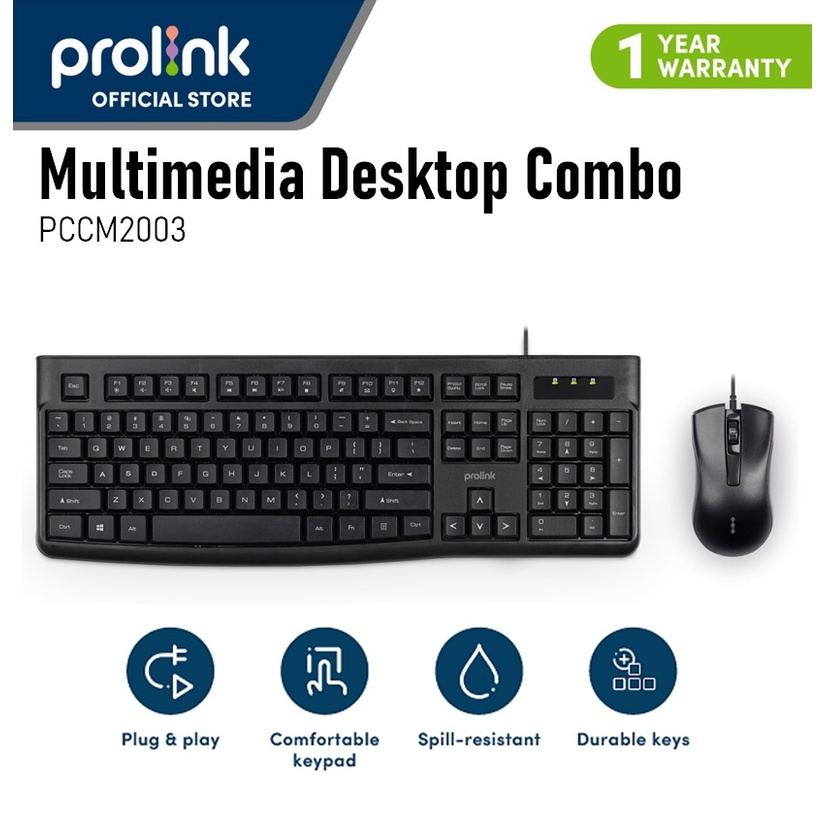 PROLiNK PCCM-2003 Multimedia Desktop Combo Keyboard and Mouse For Laptop & Computer