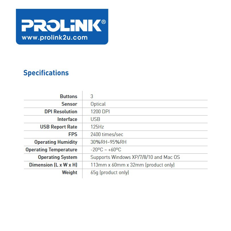 PROLiNK PMW5009 Wireless Optical Mouse /1200DPI/Power Saving/For Laptop & Computer