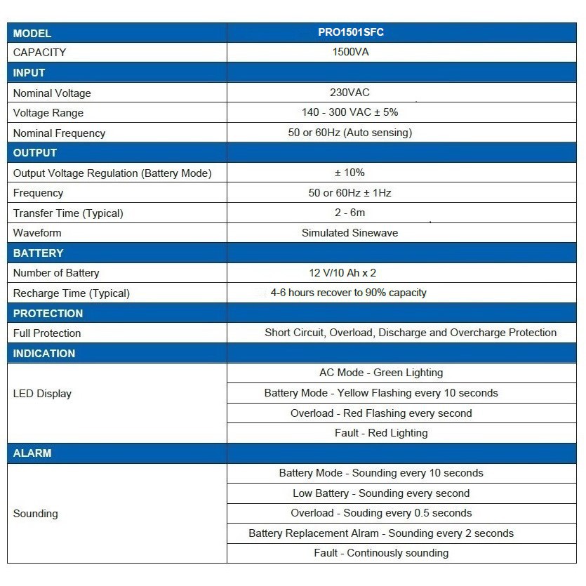 PROLiNK PRO1501SFCU 900W -1500VA Power Supply UPS /AVR 4x Universal Sockets