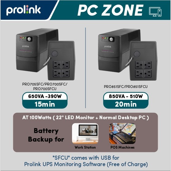 PROLiNK Super Fast Charging UPS for backup time PRO700SFC/PRO705SFC 390W - 650VA UPS 1YR WARRANTY
