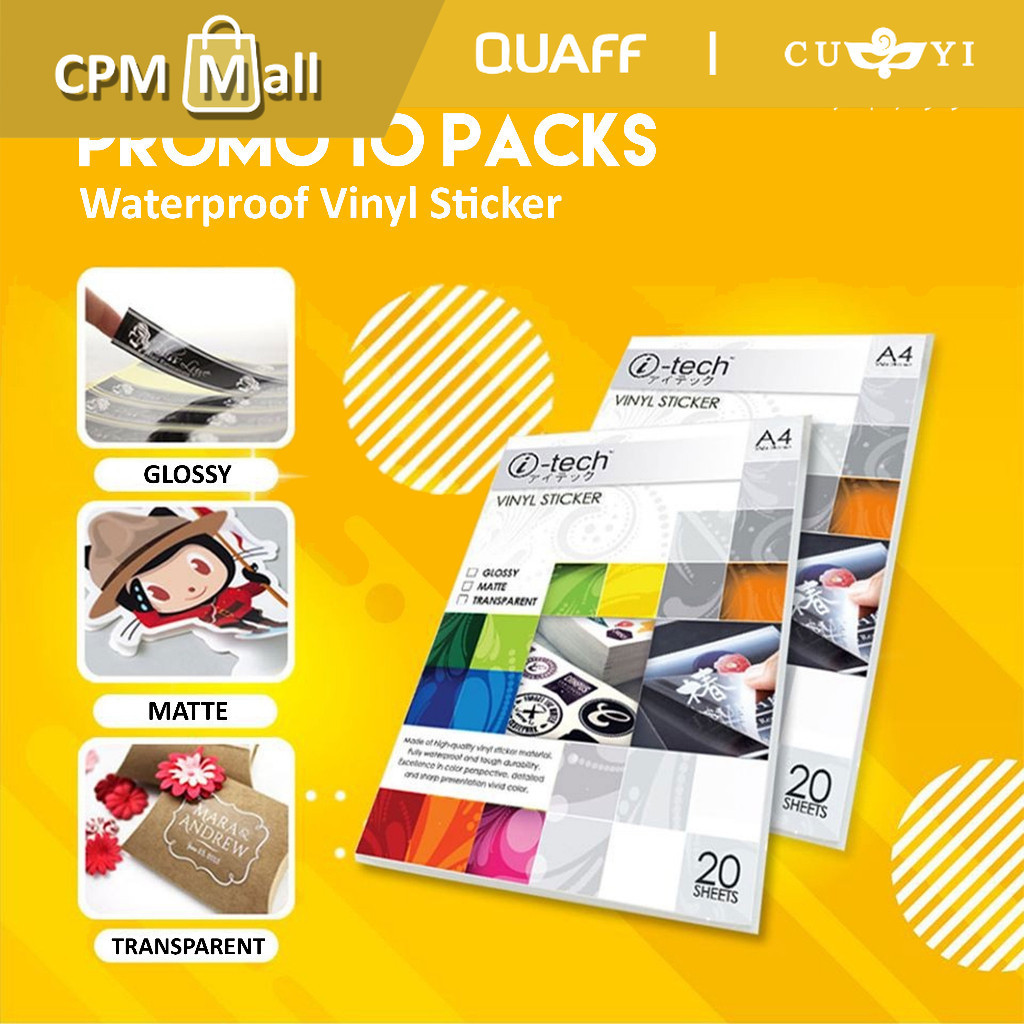 PROMO 10 PACKS A4 SIZE ITech Waterproof Vinyl Sticker Glossy Matte Transparent | CPM