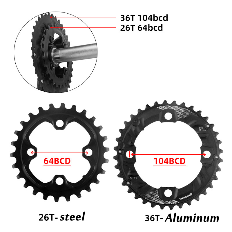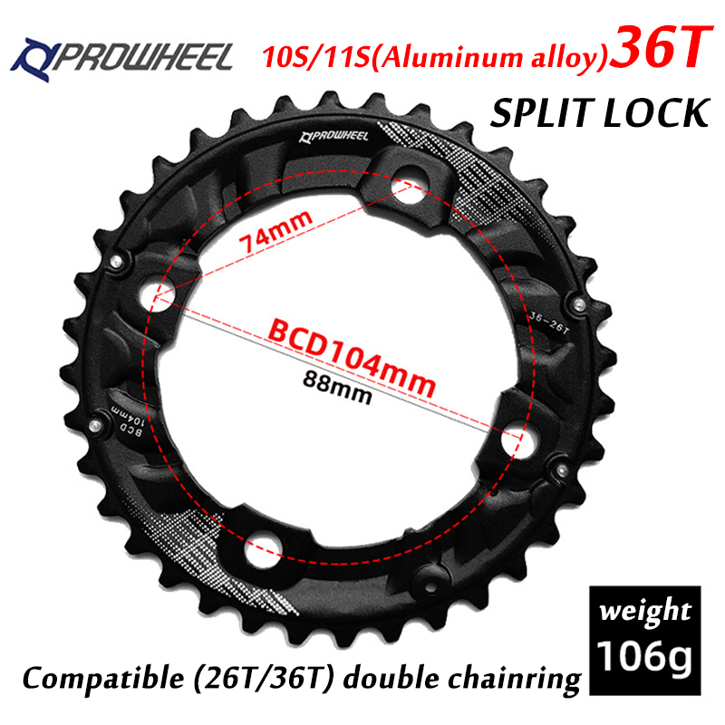 PROWHEEL 104BCD Chainring Bike MTB Double Chainring 26T 28T 36T 38T Chainwheel 2X Mountain Bike Crankset for 10/11 Speed