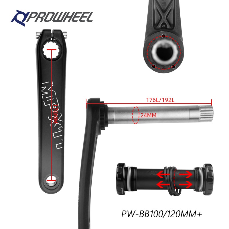 PROWHEEL Fat Bicycle Crankset 170MM Snow Bike Crankset Bottom Bracket 179mm 192mm Double Chainring 104BCD 96BCD Bike Parts