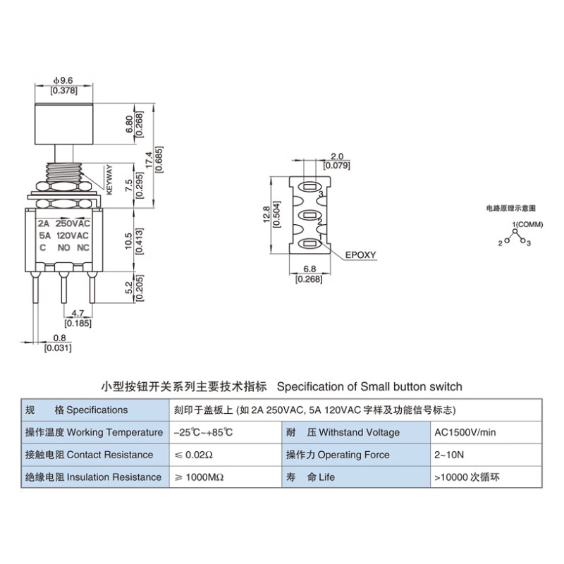 PS-102 3Pin C-NO-NC 6mm Mini Momentary Automatic Return Push Button Switch 2A250VAC/5A 120VAC Toggle Switches PS-102 MTS-102