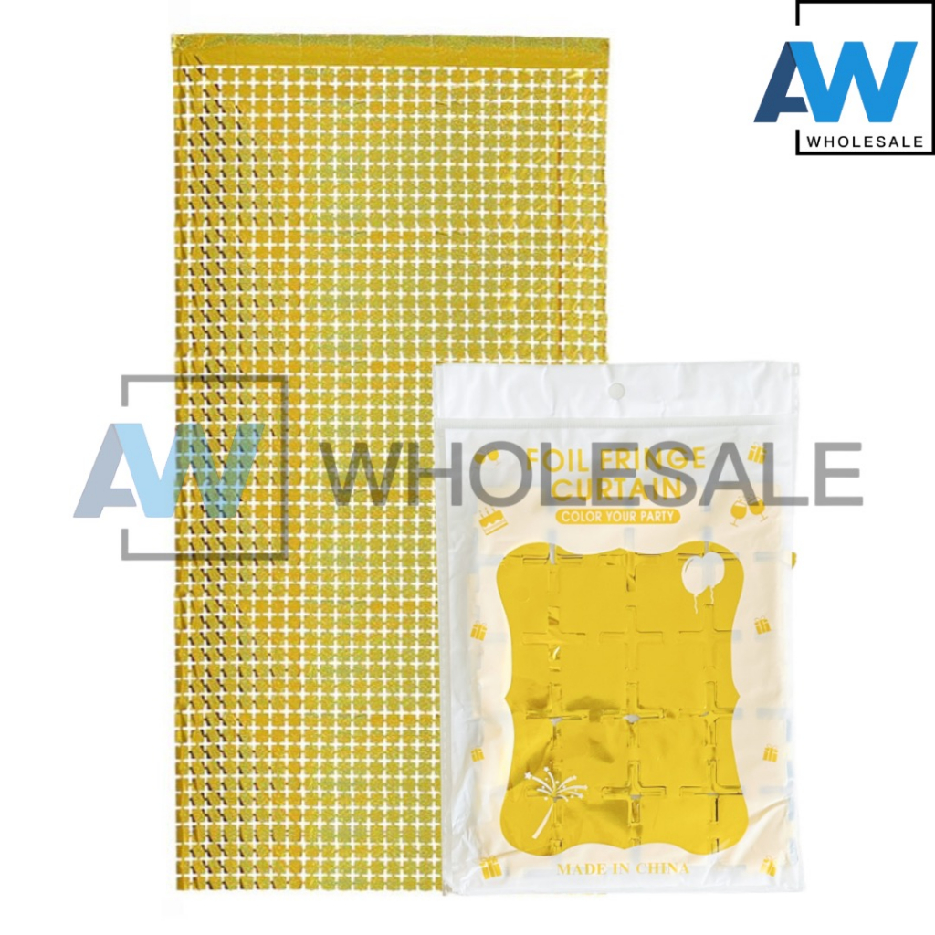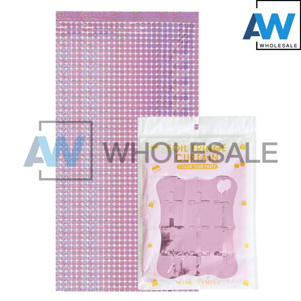 PS-411 [1 pc] Lazer Mini Square Sequin Foil Curtain 1x2 Meter Square Foil Curtain Party Needs
