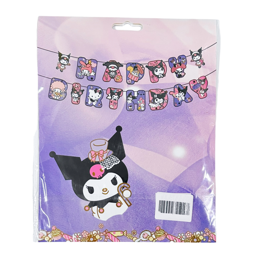 PS-488 [1 set] Kuromi Banner Happy Birthday Character Kuromi Theme Party Needs Birthday Supplies