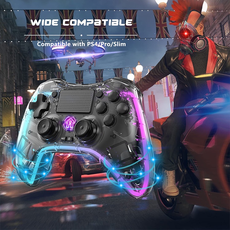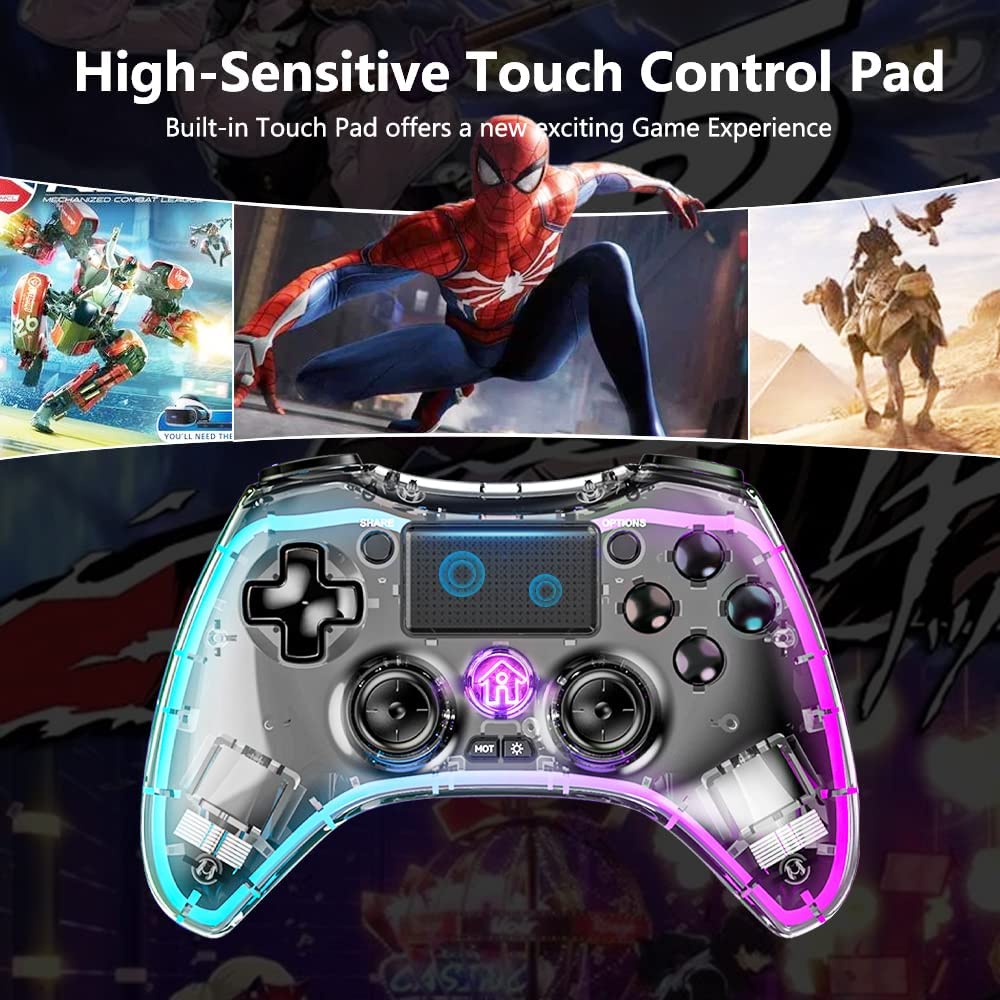 PS4 Controller, Wireless Controller Compatible with PS4/PS4 Pro/PS4 Slim/PC with Touch Panel/RGB/Programmable/6-Axies Sensor/Dual Vibration,1000mAh Battery