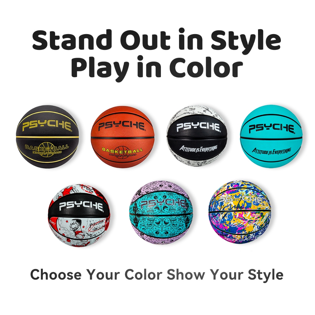 PSYCHE Rubber Basketball 29.5" Outdoor Indoor Basketball Official Size 7 Basketballs Made for Streetball Basketball