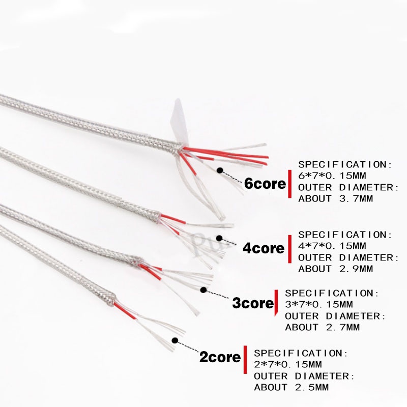 PT100 compensation wire Teflon silver-plated shielded signal wire 2-core 3-core 4-core 6-core RTD sensor extension cable