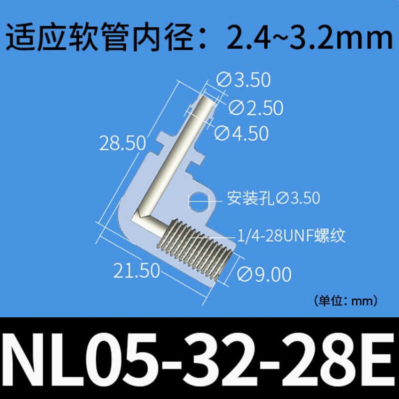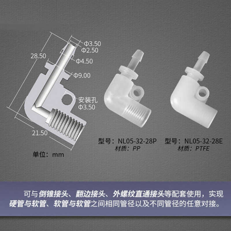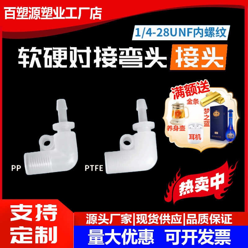 PTFE Plastic Fittings Fittings Soft and Hard Pipe Coupling Right Angle Elbow 1/4-28 Internal Thread