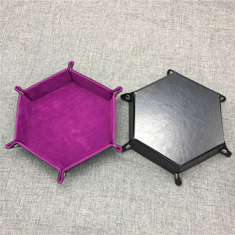 PU Hexagon Dice Collapsible Rolling Tray Storage Box for Board Games(WL2PH0803)