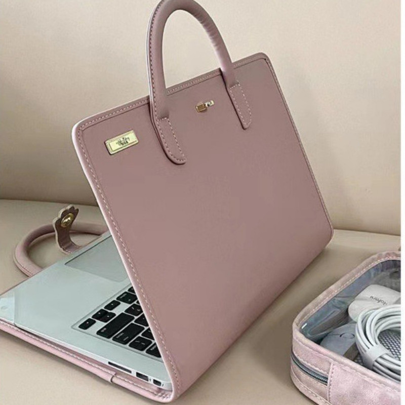 PU Laptop Protective Case Laptop Bag Pink Sleeve Fashion with Handle
