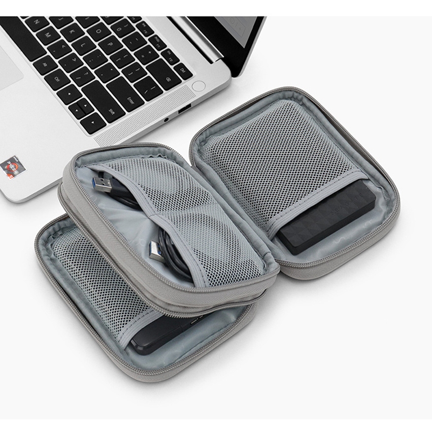 PU Leather Dual Layer External Hard Disk Organizer Bag 2.5 inches Hard Drive Protective Case Portable USB Bag