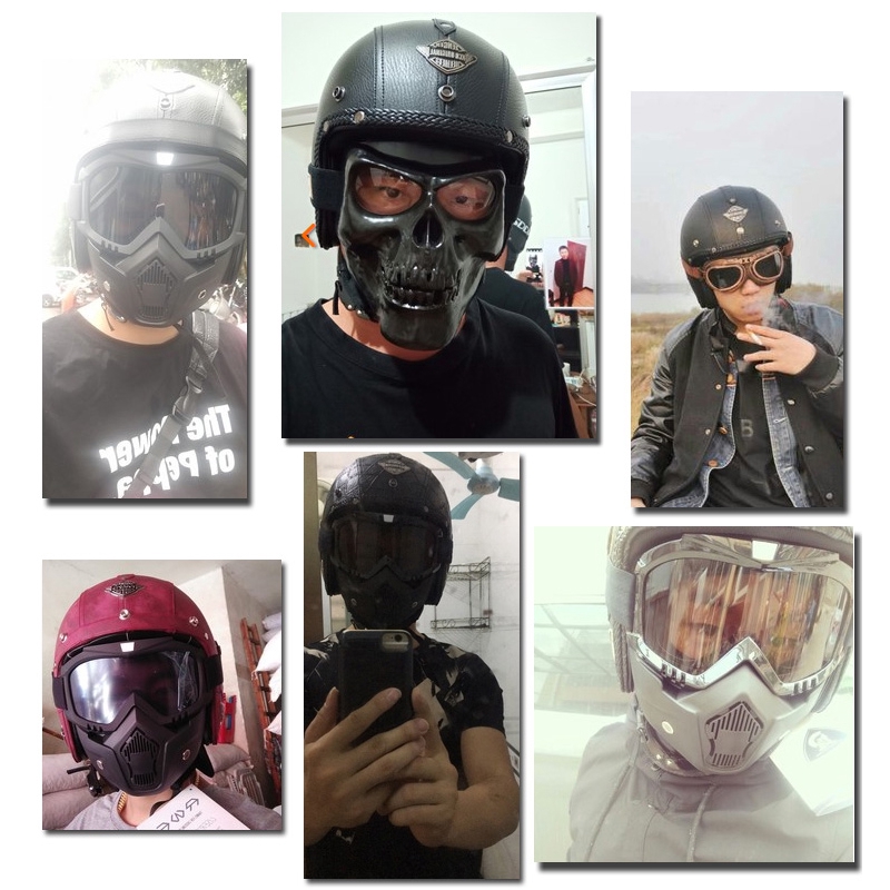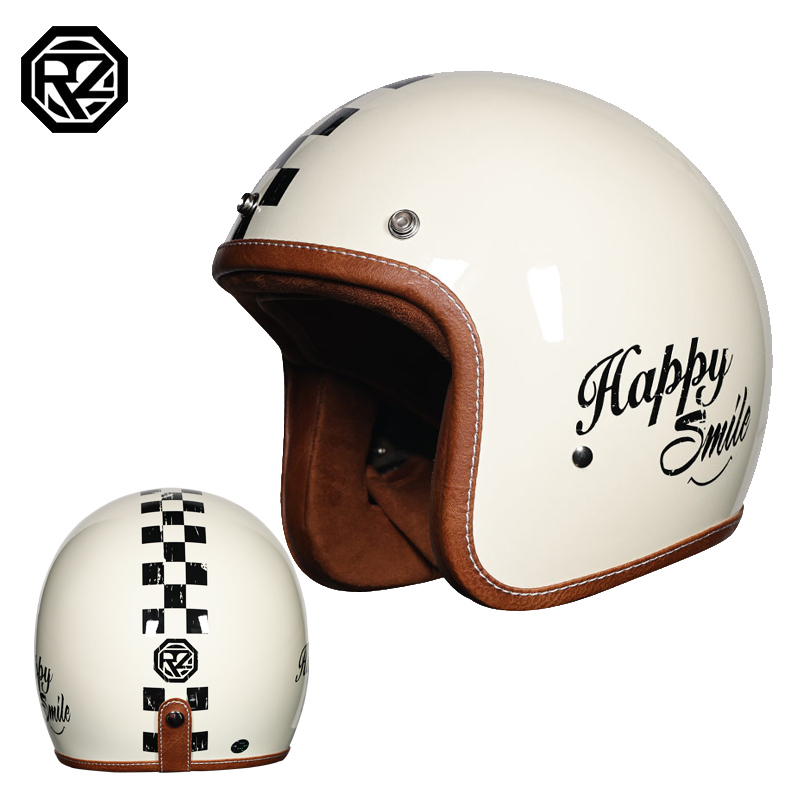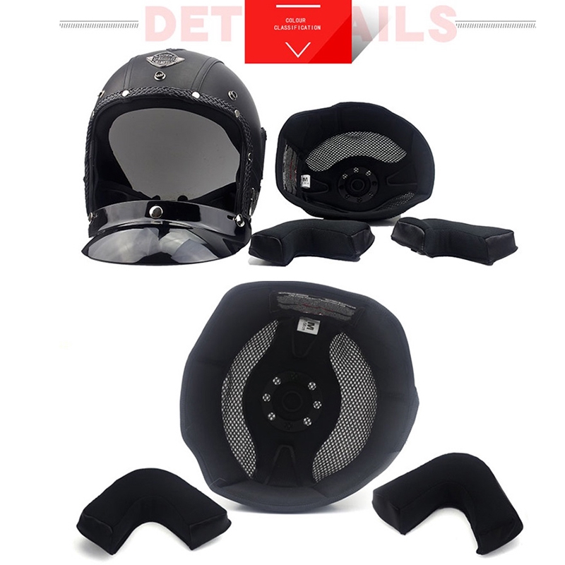 PU Leather Motorcycle Chopper Bike helmet open face vintage